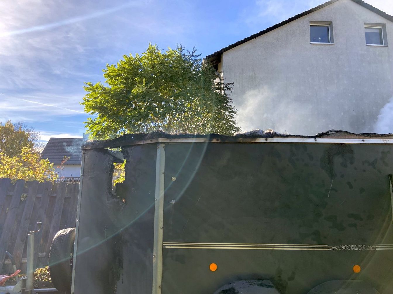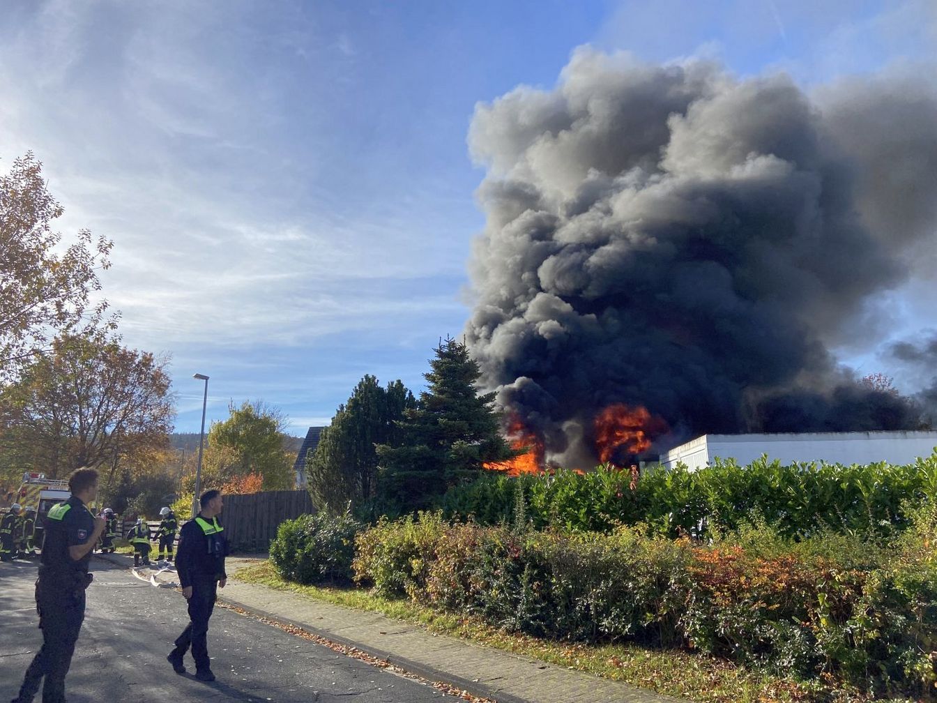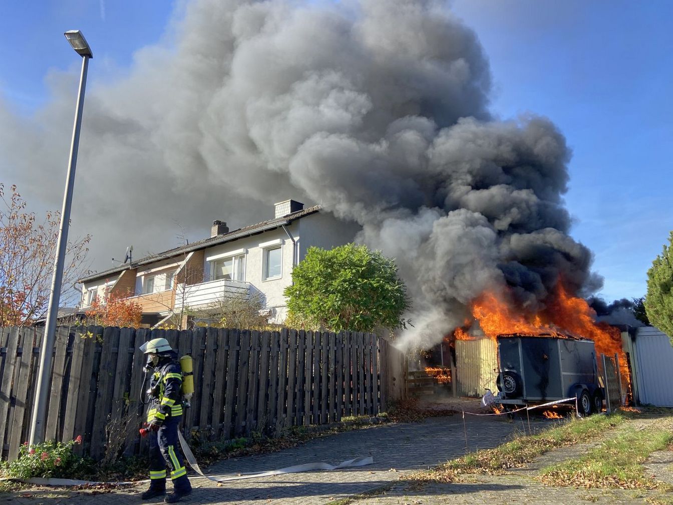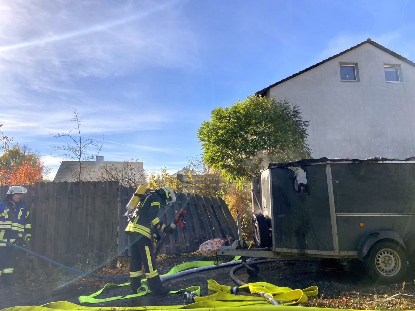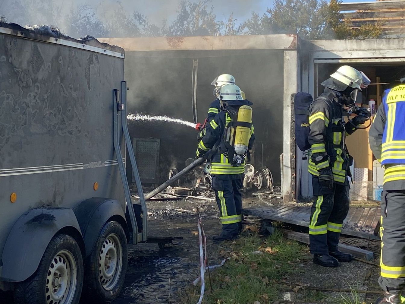 Bei Ankunft der Einsatzkräfte stand die Doppelgarage in Vollbrand und das Feuer drohte auf ein anliegendes Wohnhaus überzugreifen. Dies konnte dank des schnellen Handelns der Feuerwehr jedoch verhindert werden. Ein vor der Garage abgestellter Anhänger geriet ebenfalls in Brand und musste abgelöscht werden.