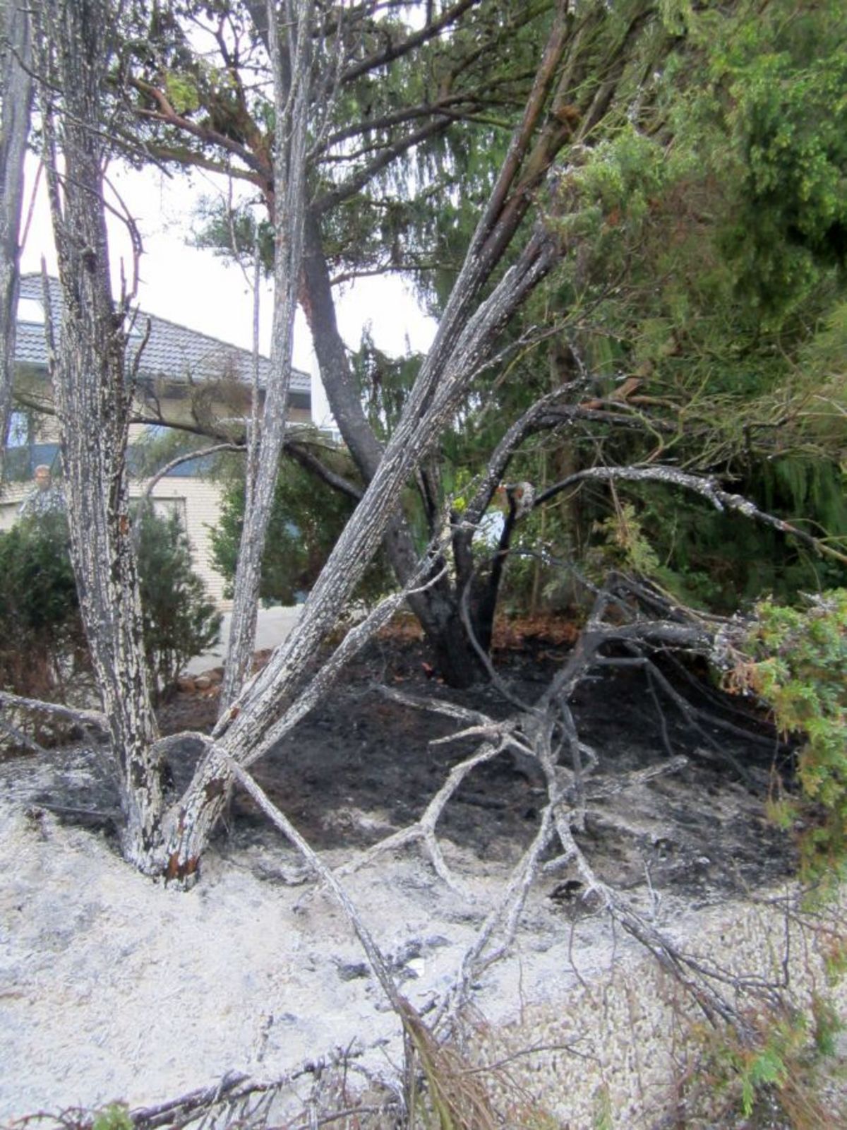 Nachdem das erste Fahrzeug der Ortsfeuerwehr Gleidingen am Einsatzort eingetroffen war, wurde schnell ersichtlich, dass das Feuer, welches Sträucher und Bäume in Mitleidenschaft gezogen hatte, in der Nacht ausgebrochen und bereits von allein erloschen war. Lediglich vereinzelte Glutnester konnten auf der betroffenen Fläche von etwa 20m² von der Feuerwehr mit der Wärmebildkamera ausgemacht und mit 400 Liter Wasser abgelöscht werden. Eine Nachbarin, welche sich am frühen Morgen vor Ihre Haustür begab, bemerkte die angekohlten Büsche und Bäume sowie die aufgestiegenen Rauschschwaden und alarmierte daraufhin Eigentümer und Feuerwehr. Bereits in der Nacht hörte die Dame einen Knall vor ihrer Tür, woraufhin sie aus dem Fenster schaute, jedoch keine Feststellung machen konnte. Wie es zu der Entzündung der Sträucher und Bäume kommen konnte ist noch unklar.