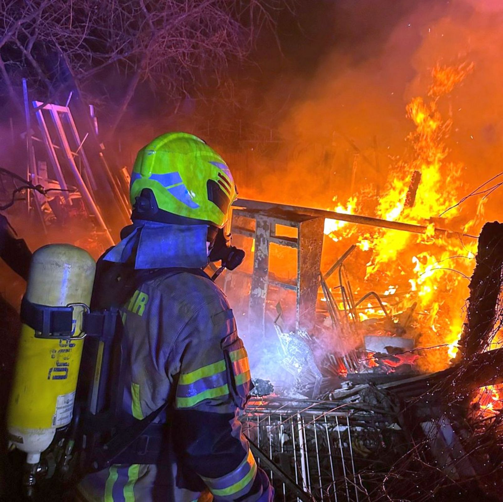 Durch den fortgeschrittenen Brand, die extreme Hitzeentwicklung sowie der erschwerten Löschwasserversorgung war es den Einsatzkräften jedoch nicht möglich ein Übergreifen des Brandes auf die benachbarte Laube zu verhindern, auch sie wurde in Mitleidenschaft gezogen. Nachdem beide Gebäude schließlich abgelöscht werden konnten, wurde um 5.11 Uhr „Feuer aus“ gemeldet.