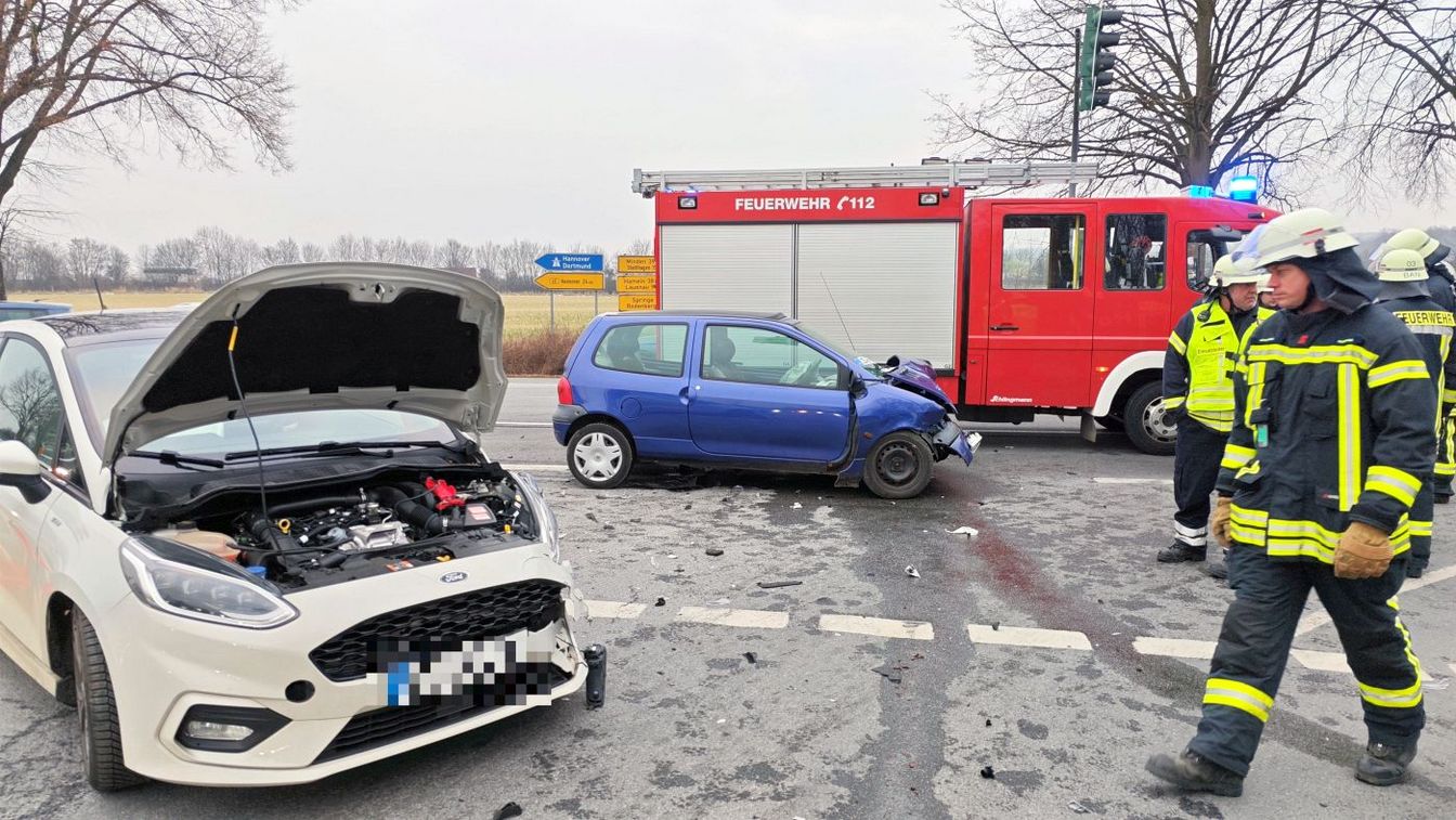 Vor Ort waren zwei Pkw zusammengestoßen. Nach Angaben der Polizei wollte der Fahrer eines Twingo, der auf der B65 in Richtung Bantorf unterwegs war, nach links in Richtung Bad Nenndorf abbiegen. Dabei kam es zum Zusammenstoß mit einem Fahrzeug im Gegenverkehr. Die genauen Unfallumstände sind Teil der weiteren Ermittlungen. Die Feuerwehr klemmte die Batterien ab und stellte die Brandsicherung sicher.