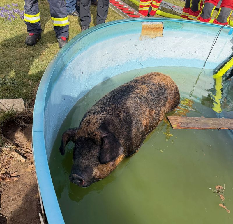 Garbsen. Ein ungewöhnlicher Einsatz beschäftigte am Sonntag, 12. April, die Feuerwehr in Frielingen: Ein rund 300 Kilogramm schweres Schwein musste aus einem Gartenpool befreit werden. Das Tier war aus bislang ungeklärter Ursache in das Becken geraten und konnte sich aus eigener Kraft nicht mehr befreien.