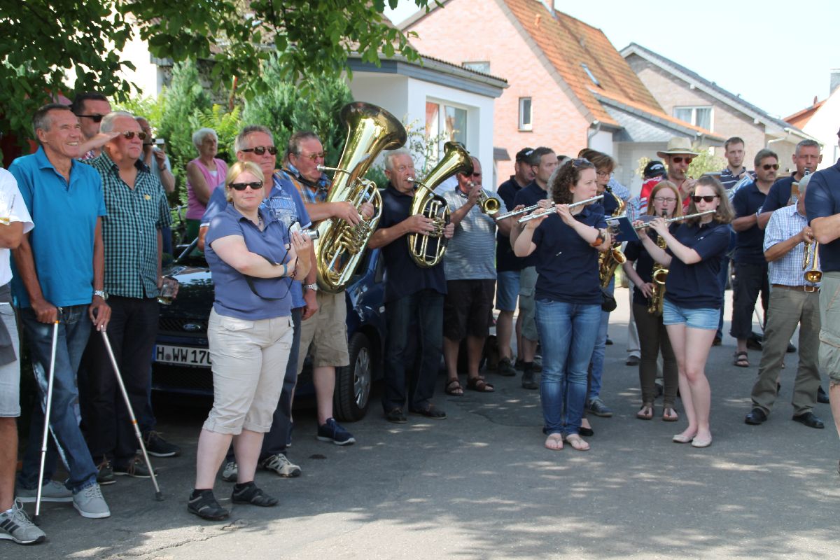 Nachdem das Historische Freischießen 2017 mit dem Scheibennageln beim Volkskönig endgültig abgeschlossen ist, trafen sich im Anschluss auf Einladung des Volkskönigs die Offiziere und auch zahlreiche Gardisten am Mittwochvormittag im Garten von Volkskönig Winnie Gehrke zum Schinkenkloppen.