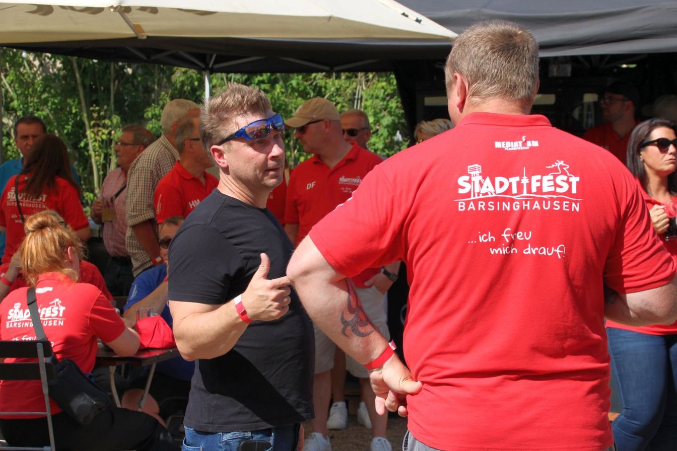 Es gab Gegrilltes, gekühlte Getränke und Live-Musik von „The Suits“. Die Kosten für das Fest wurden aus den Mitgliederbeiträgen bezahlt. Zum Sommerfest kamen auch Bürgermeister Henning Schünhof und der Bundestagsabgeordnete Tilman Kuban. „Ich bin heute nicht als Bürgermeister hier, sondern als Vereinsmitglied“, so Schünhof, „Dennoch danke ich den Ehrenamtlichen für ihren Einsatz für das Stadtfest Barsinghausen, freue mich bei diesem warmen Wetter aber auf ein kühles Bier mit euch und wünsche uns allen viel Spaß.“ Kuban, am Freitag noch bei der Stadtfest Eröffnung in Ronnenberg anwesend: „Der Ronnenberger Verein hat 800 Mitglieder. Das wollen wir in Barsinghausen auch und dann auch gerne die 1.000er Marke erreichen. Denn so ein großes Stadtfest wie in Barsinghausen braucht viele helfende Hände. Vielen Dank an die Mitglieder der IG Stadtfest, die so viel Herzblut reinstecken.“