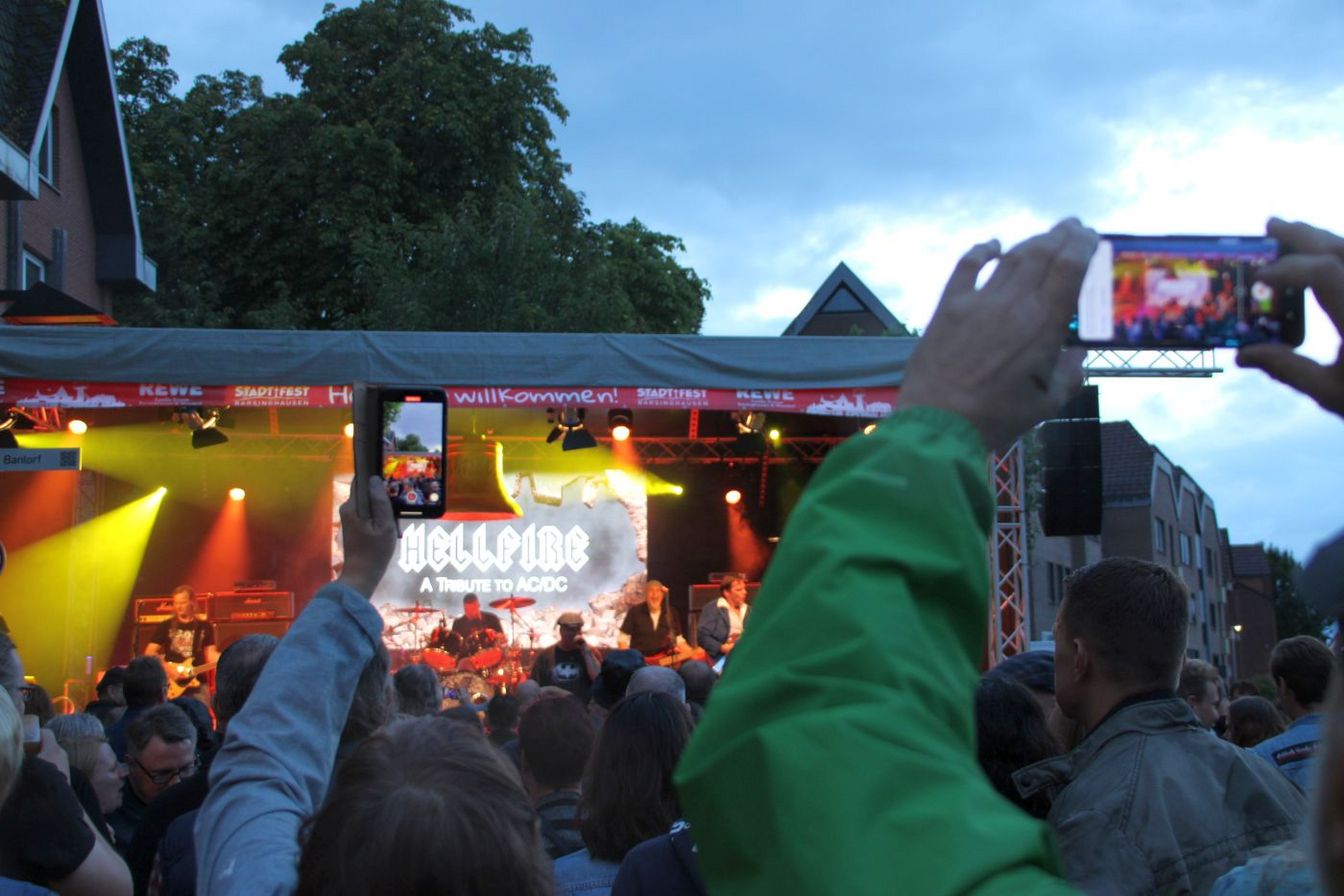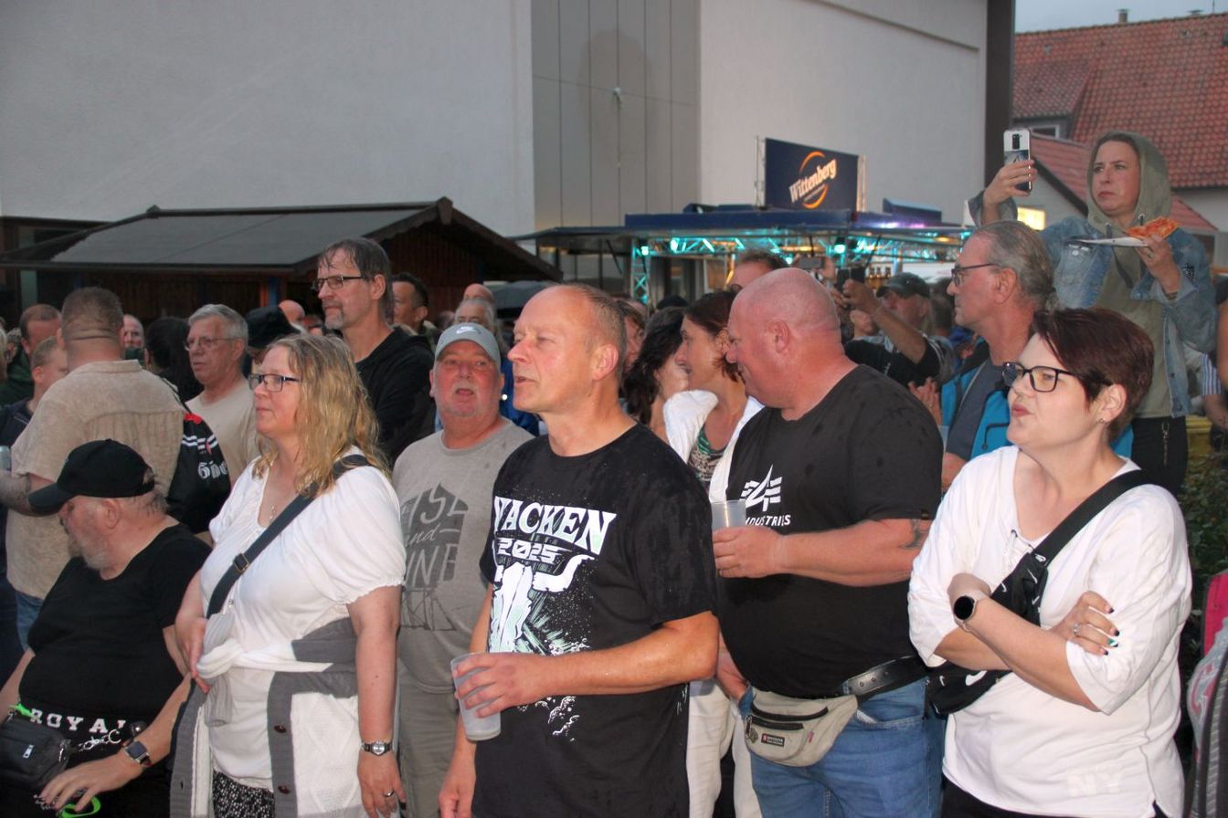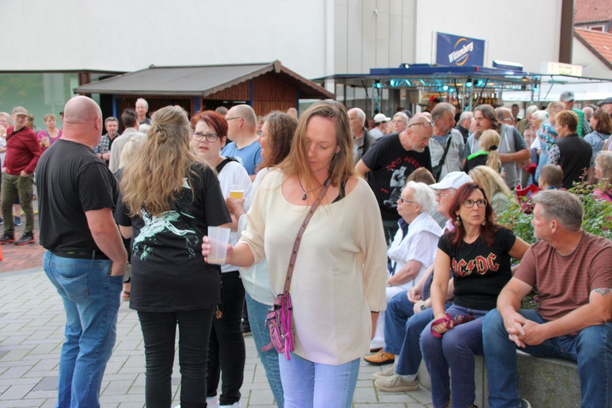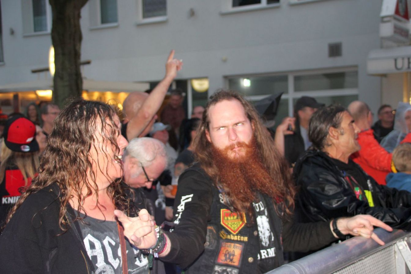 Nach der Eröffnung eroberten die Gäste das Stadtfest und begannen mit der Party. Gegen 20 Uhr meldete sich das Wetter zu Wort und lieferte den traditionellen Regenschauer. Gäste und Bands ließen sich davon aber nicht die Stimmung verhageln und feierten weiter. ACDC Hellfire stimmte einfach den Hit „Thunderstruck“ an. Im Regen machte das Headbangen gleich doppelt so viel Spaß und einige Gäste forderten Schlamm vor der Bühne, um Festival-Feeling aufkommen zu lassen. Der Wettergott zeigte sich, möglicherweise wegen dem Gitarrenrock, gnädig und beendete zeitnah den Schauer.