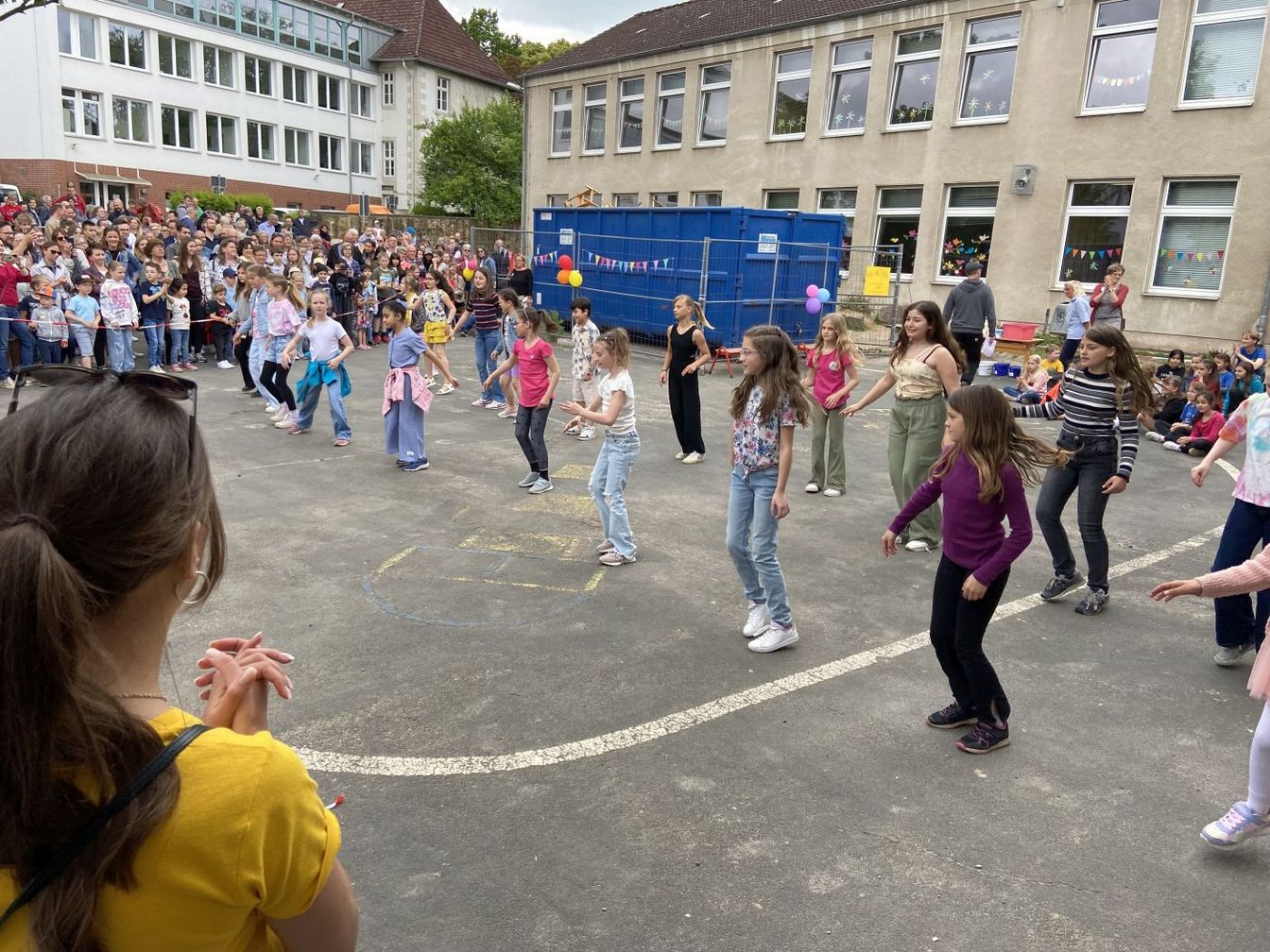An dem fröhlichen Nachmittag sangen und tanzten die Kinder für die Besucher. Es gab eine Tombola, eine Hüpfburg, ein großes 4-Gewinnt-Spiel und Mal-Aktionen. Neben Kaffee und Kuchen konnten die Eltern und Gäste sich die neuen Pläne für die Schule anschauen und im Geschichtszimmer in Erinnerungen an die vergangenen Jahre der WSS schwelgen.