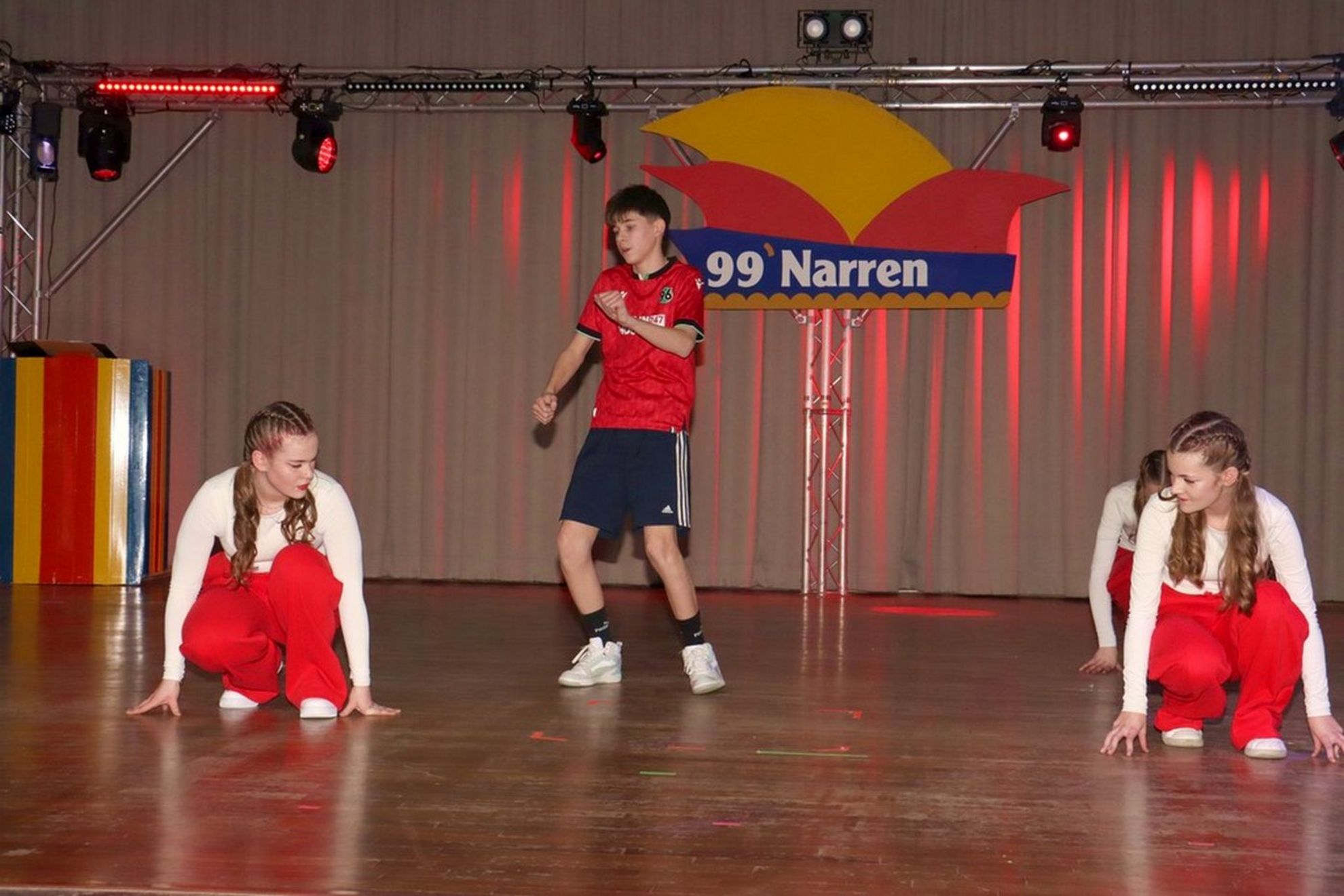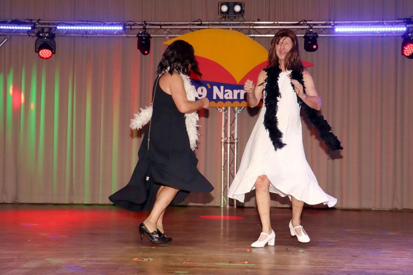 Die ausverkaufte Halle wurde von Wolfgang Pardey und Andreas Bröder begrüßt. Moderiert wurde die Karnevalsfeier erneut von Holger Heine. Auf dem Programm standen dann die Tanzmariechen aus Ricklingen und Rainer Thon als „Der Therapeut“. Besonders stolz zeigte sich der Vorsitzende Pardey über Mina Bröder und Emma Zimmer. Die beiden jungen Tänzerinnen kommen aus dem Verein und standen mit ihren eigenen Tanznummern zum ersten Mal auf der Bühne. „Sogar ihre Kostüme haben sie selbst gestaltet“, so Pardey zum Nachwuchs der ’99er Narren. Für Begeisterung sorgten auch die Tanzgruppe aus Ricklingen, die Garde aus dem Partnerverein aus Apelern.