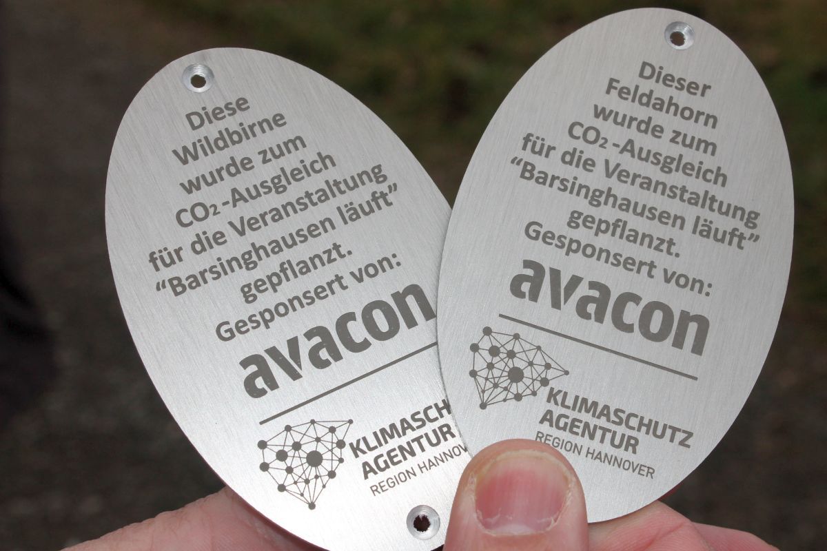 „Ich wollte die Aktion des Laufs nachhaltig gestalten und habe einfach alles schriftlich dokumentiert“, erklärt Lauf-Organisator Marc Wilke. Vom Strom für den PC, über Papierverbrauch, bis hin zur PKW-Anfahrt einzelner Läufer wurde alles notiert. Die Klimaschutzagentur hat aus diesen Werten dann errechnet, wie hoch die Kompensation ausfallen muss und kam auf drei Bäume. Durch die Organisation der Veranstaltung, die Anreise und Verpflegung von den 423 Läufern wurden etwa 1,8 Tonnen CO²-Emissionen verursacht. Frank Glaubitz, Avacon, griff ebenfalls zum Spaten: „Es ist toll das Herr Wilke sich so viele Gedanken über das Laufen hinaus gemacht hat. Das ist eine tolle Arbeit, die er da in seinem Ehrenamt vollbringt.“ An den Bäumen wurde jeweils noch eine Plakette angebracht.