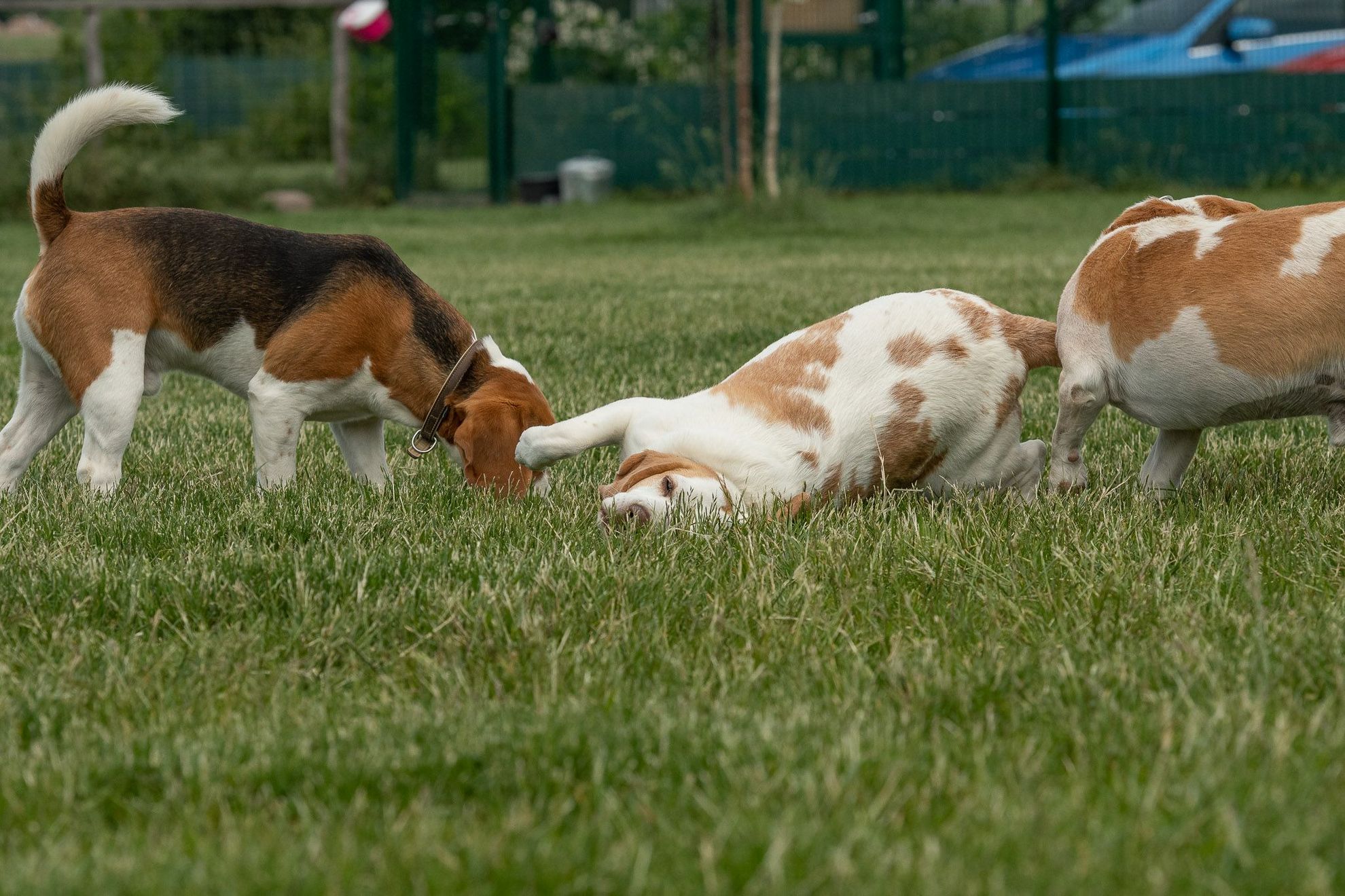 37 Beagle tummeln sich auf dem Hundespielplatz in Northen, Große Straße 43-47. Der Platz ist fast 5000 m² groß und beaglesicher eingezäunt, wie es heißt. Hier können die Hunde nach Herzenslust toben. Und das tun sie auch, immer am zweiten Sonntag zwischen 14 und 16 Uhr.