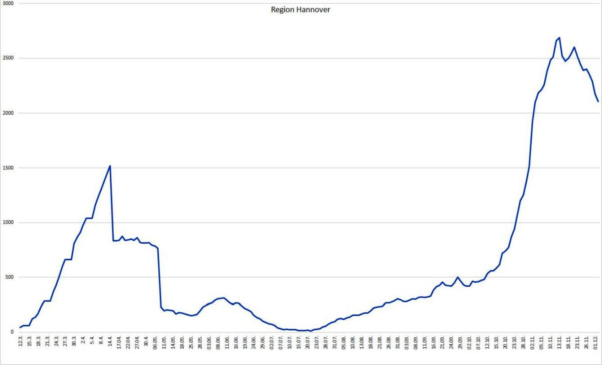 Die Region Hannover hat seit Auftreten der ersten Corona-Infektion insgesamt 12.669 Menschen registriert, die sich in der Region mit dem Coronavirus infiziert haben. Davon sind zum heutigen Stand 10.340 Personen als genesen aufgeführt. 221 Menschen sind infolge einer nachgewiesenen oder mutmaßlichen Corona-Infektion in der Region verstorben; der Altersmedian der Verstorbenen liegt bei 84 Jahren. Somit sind zum jetzigen Zeitpunkt 2.108 Menschen in der Region infiziert. Die 7-Tages-Inzidenz pro 100.000 Einwohner liegt für die Region Hannover tagesaktuell bei 81,3.