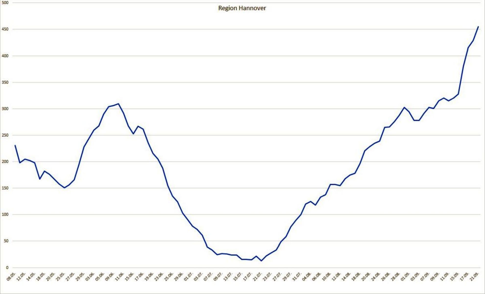 Die Region Hannover hat seit Auftreten der ersten Corona-Infektion insgesamt 4.044 Menschen registriert, die sich in der Region mit dem Coronavirus infiziert haben. Davon sind zum heutigen Stand 3.465 Personen als genesen aufgeführt. 124 Menschen sind infolge einer nachgewiesenen oder mutmaßlichen Corona-Infektion in der Region verstorben; der Altersmedian der Verstorbenen liegt bei 83 Jahren. Somit sind zum jetzigen Zeitpunkt 455 Menschen in der Region infiziert, davon befinden sich 12 Personen im Krankenhaus.
