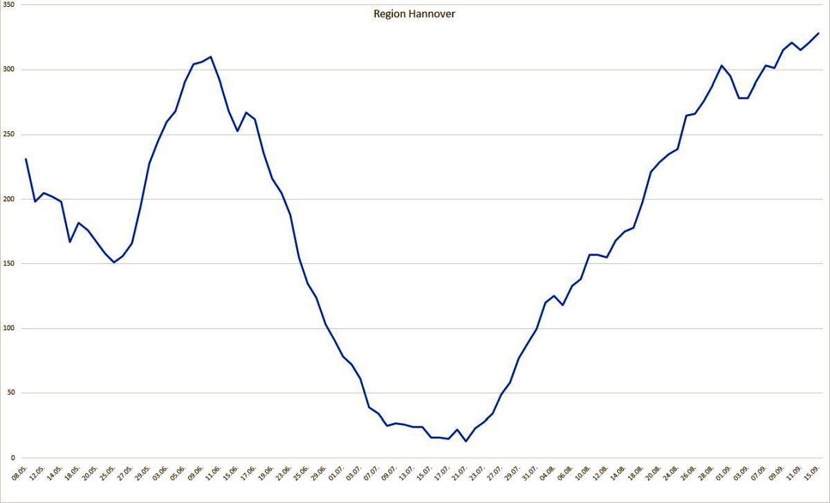 Die Region Hannover hat seit Auftreten der ersten Corona-Infektion insgesamt 3.790 Menschen registriert, die sich in der Region mit dem Coronavirus infiziert haben. Davon sind zum heutigen Stand 3.339 Personen als genesen aufgeführt. 122 Menschen sind infolge einer nachgewiesenen oder mutmaßlichen Corona-Infektion in der Region verstorben; der Altersdurchschnitt der Verstorbenen liegt bei 82 Jahren. Somit sind zum jetzigen Zeitpunkt 328 Menschen in der Region infiziert, davon befinden sich 11 Personen im Krankenhaus.