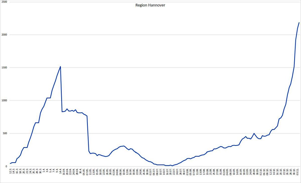 Die Region Hannover hat seit Auftreten der ersten Corona-Infektion insgesamt 7.650 Menschen registriert, die sich in der Region mit dem Coronavirus infiziert haben. Davon sind zum heutigen Stand 5.307 Personen als genesen aufgeführt. 156 Menschen sind infolge einer nachgewiesenen oder mutmaßlichen Corona-Infektion in der Region verstorben; der Altersmedian der Verstorbenen liegt bei 83 Jahren. Somit sind zum jetzigen Zeitpunkt 2.187 Menschen in der Region infiziert. Die 7-Tages-Inzidenz pro 100.000 Einwohner liegt für die Region Hannover tagesaktuell bei 122,3.