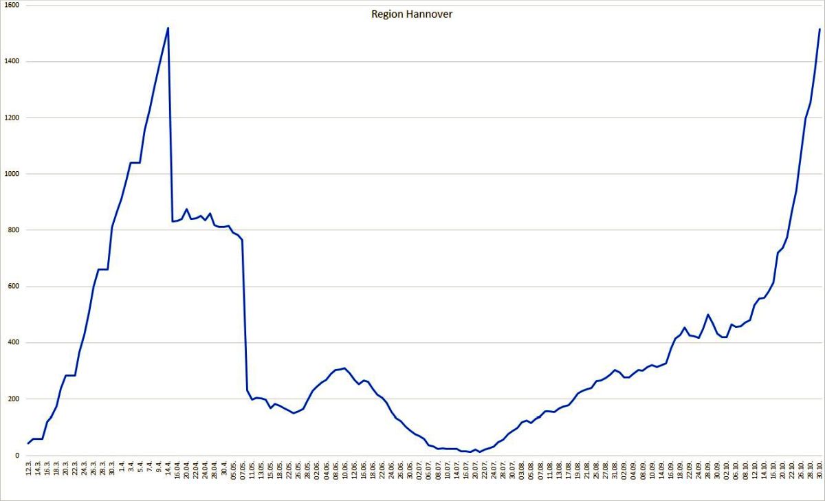 Die Region Hannover hat seit Auftreten der ersten Corona-Infektion insgesamt 6622 Menschen registriert, die sich in der Region mit dem Coronavirus infiziert haben. Davon sind zum heutigen Stand 4960 Personen als genesen aufgeführt. 147 Menschen sind infolge einer nachgewiesenen oder mutmaßlichen Corona-Infektion in der Region verstorben; der Altersmedian der Verstorbenen liegt bei 83 Jahren. Somit sind zum jetzigen Zeitpunkt 1515 Menschen in der Region infiziert, davon befinden sich 29 Personen im Krankenhaus. Die 7-Tages-Inzidenz pro 100.000 Einwohner liegt für die Region Hannover tagesaktuell bei 82,9.
