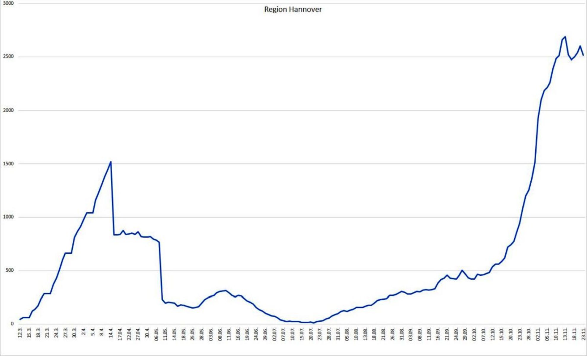 | 23.11. | 20.11. | Fallzahl Gesamt seit Ausbruch | 7-Tage-Inzidenz |