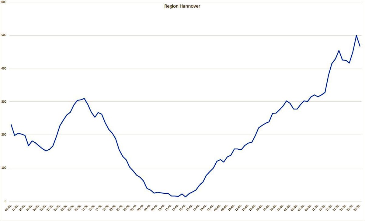 Die Region Hannover hat seit Auftreten der ersten Corona-Infektion insgesamt 4.282 Menschen registriert, die sich in der Region mit dem Coronavirus infiziert haben. Davon sind zum heutigen Stand 3.682 Personen als genesen aufgeführt. 132 Menschen sind infolge einer nachgewiesenen oder mutmaßlichen Corona-Infektion in der Region verstorben; der Altersmedian der Verstorbenen liegt bei 83 Jahren. Somit sind zum jetzigen Zeitpunkt 468 Menschen in der Region infiziert, davon befinden sich 17 Personen im Krankenhaus.