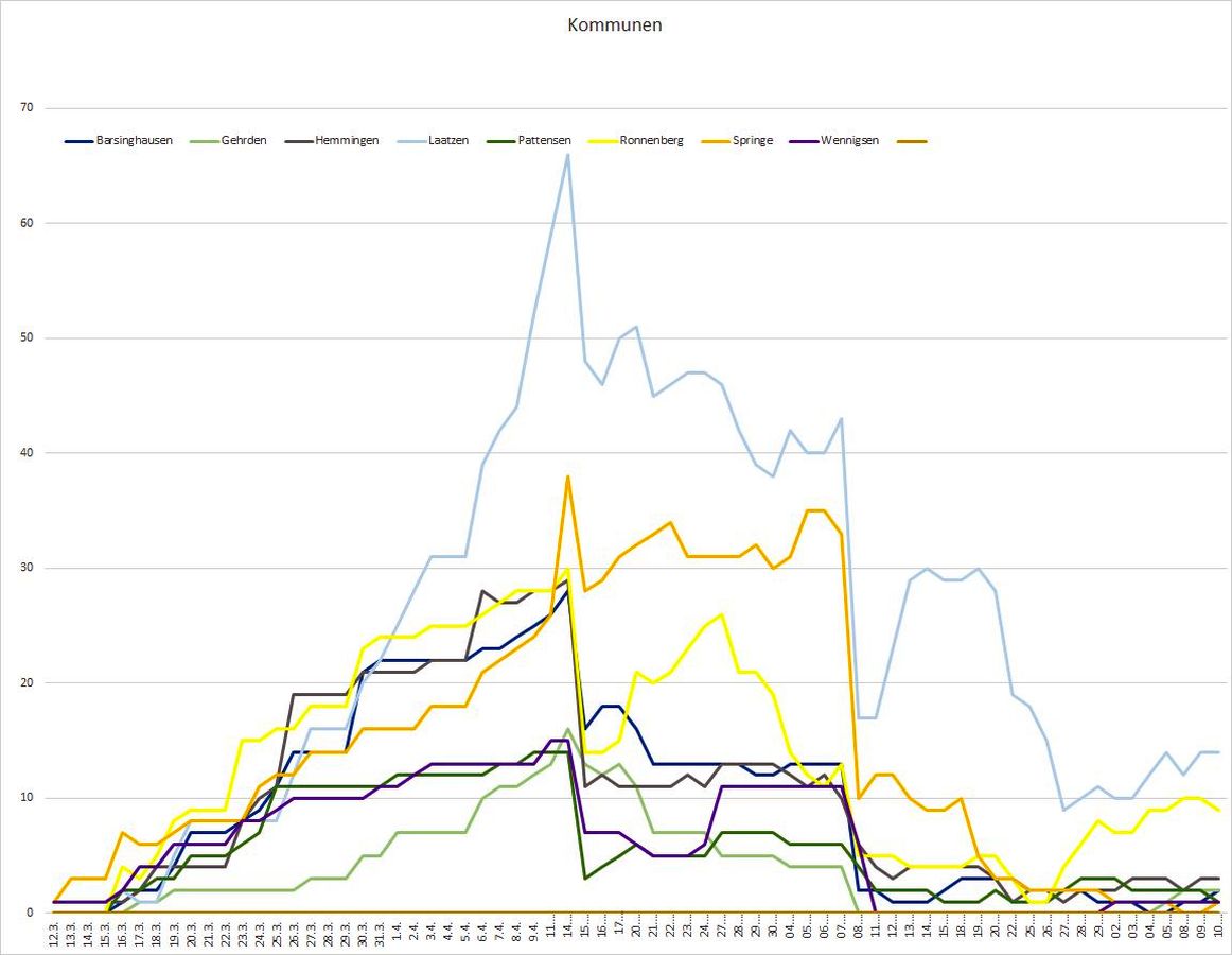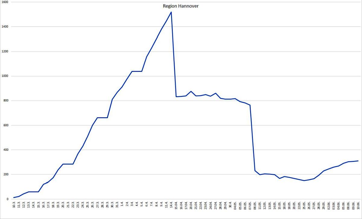 Die Region Hannover hat seit Auftreten der ersten Corona-Infektion insgesamt 2.612 Menschen registriert, die sich in der Region mit dem Coronavirus infiziert haben. Davon sind zum heutigen Stand 2.190 Personen als genesen aufgeführt. 112 Menschen sind infolge einer nachgewiesenen oder mutmaßlichen Corona-Infektion in der Region verstorben; der Altersdurchschnitt der Verstorbenen liegt bei 82,4 Jahren. Somit sind zum jetzigen Zeitpunkt 310 Menschen in der Region infiziert.