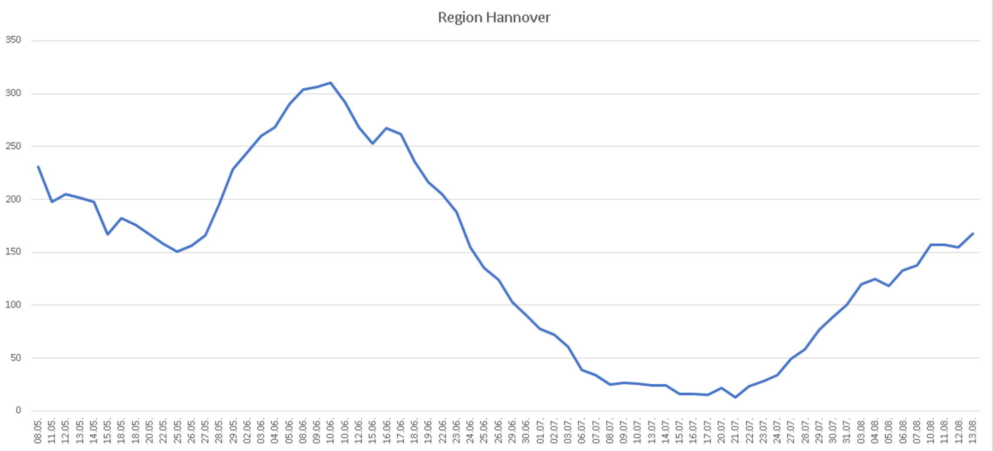 Die Region Hannover hat seit Auftreten der ersten Corona-Infektion insgesamt 3064 Menschen registriert, die sich in der Region mit dem Coronavirus infiziert haben (+26 verglichen zur letzten Meldung). Davon sind zum heutigen Stand 2776 Personen als genesen aufgeführt. 120 Menschen sind infolge einer nachgewiesenen oder mutmaßlichen Corona-Infektion in der Region verstorben; der Altersdurchschnitt der Verstorbenen liegt bei 82 Jahren. Somit sind zum jetzigen Zeitpunkt 168 Menschen in der Region infiziert.