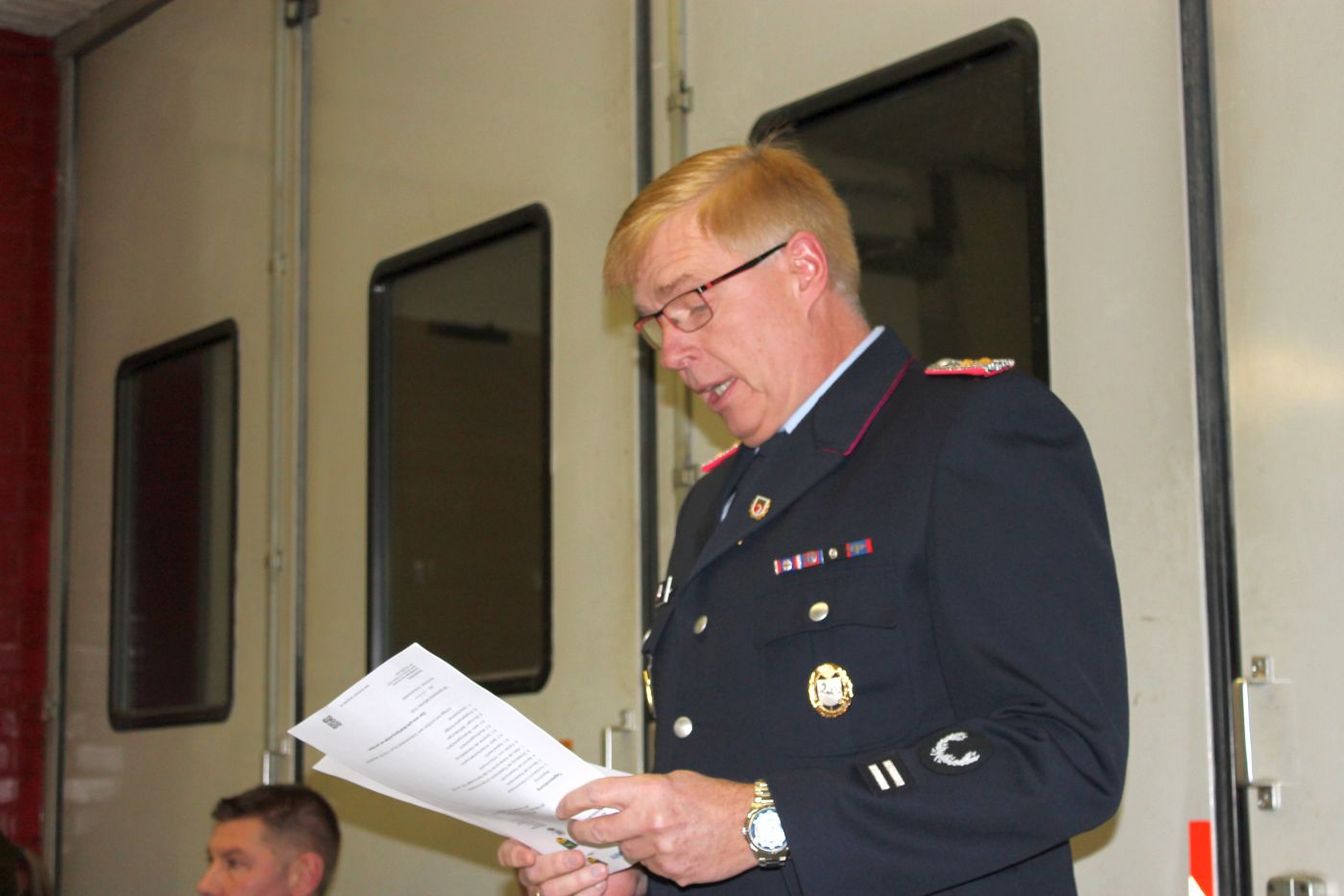 Anschließend wurde Sebastian Volker zum Löschmeister befördert. Alle anderen Beförderungen und Ehrungen sollen dann nach dem Umzug im neuen Feuerwehrhaus stattfinden.