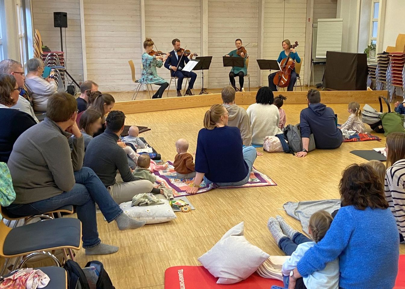 Über die Dauer des gesamten Konzertes wurde es nie langweilig, Karoline und Daniel Stemberg (Violine) moderierten das Konzert und erläuterten kurz und prägnant die Musikstücke und Hintergründe zu der Idee des Babykonzertes. Die kleinen Zuschauer wurden zum Tanz animiert, und die Eltern sangen gemeinsam einen Kanon. Alle Eltern / Großeltern wünschen sich, dass dieses Projekt wiederholt wird.