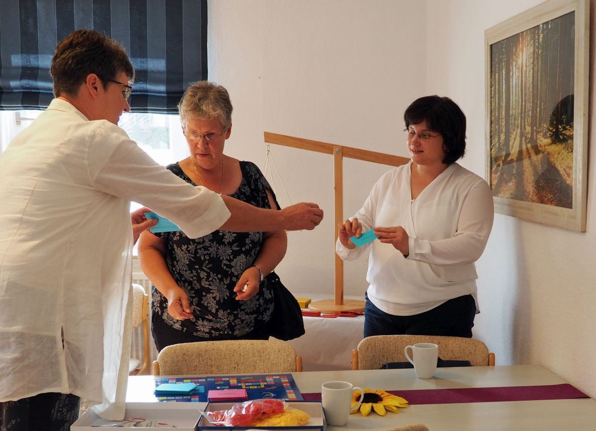 Die Gäste konnten beim Tag der offenen Tür direkt ins Gespräch mit den verschiedenen Fachfrauen kommen. Außerdem waren in den Räumen vier Stationen aufgebaut. Unter anderem zeigte Anette Becker mit der Schuldenwaage und dem Spiel "Kohlopoly" zwei Medien für die Präventionsarbeit. "Die Schuldenwaage zeigt sehr anschaulich, wie schnell die Einnahmen aus dem Einkommen und die Ausgaben für Wohnung, Strom, Heizung und so weiter aus dem Gleichgewicht geraten können", erklärte sie. An einer anderen Station konnten die Gäste verschiedene Aussagen über die Bedeutung der Diakonie auswählen.