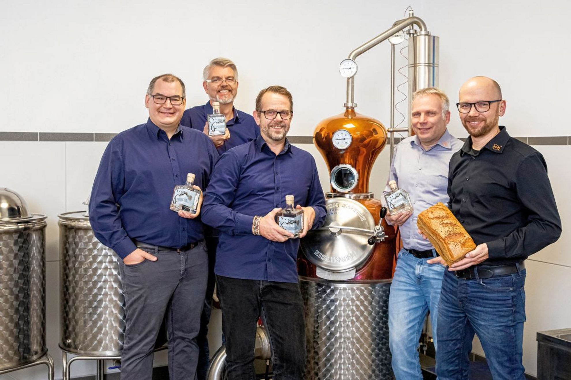 Bäckermeister Axel und Kai Oppenborn sowie Destillateur Christian Moritz sind stolz auf „ihren Gersterbrot-Gin" und freuen sich schon jetzt, den Gerster Dry Gin beim Wettbewerb „Kulinarisches Niedersachsen“ 2021 der Jury zu präsentieren.