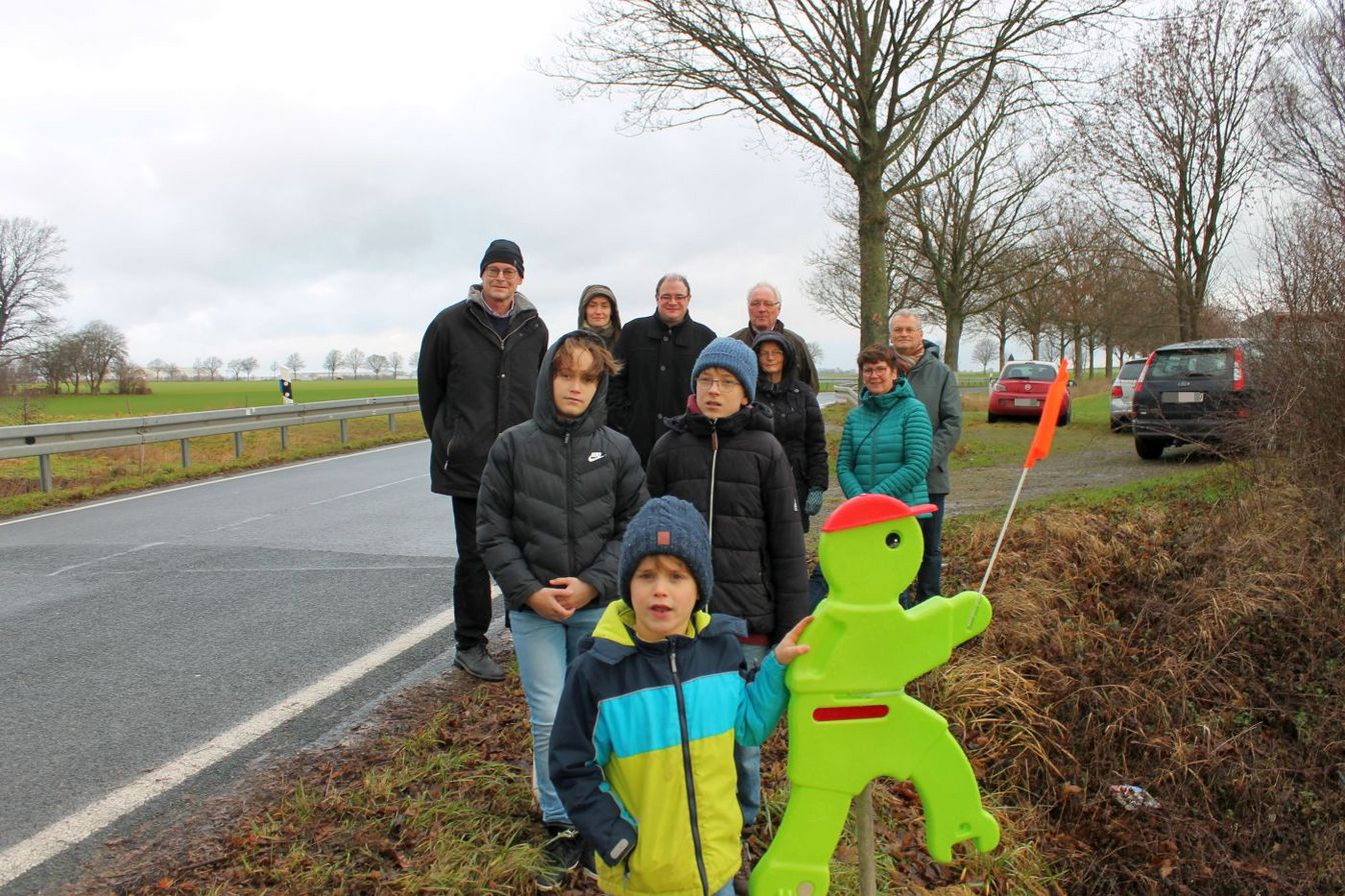 Ostermunzel/Barrigsen. Die dunkle Jahreszeit hat noch einmal gezeigt, wie gefährdet Rad- und Fußgänger im Straßenverkehr sind. Eine besonders gefährliche Stelle ist entlang der Ostermunzler Straße zwischen Barrigsen und Ostermunzel zu finden. Die CDU hat nun grüne Warnfiguren aufgestellt, um auf das Gefahrenpotential aufmerksam zu machen. Es folgt eine Unterschriftenaktion, um der Region Hannover noch einmal zu zeigen, dass hier Handlungsbedarf besteht. .