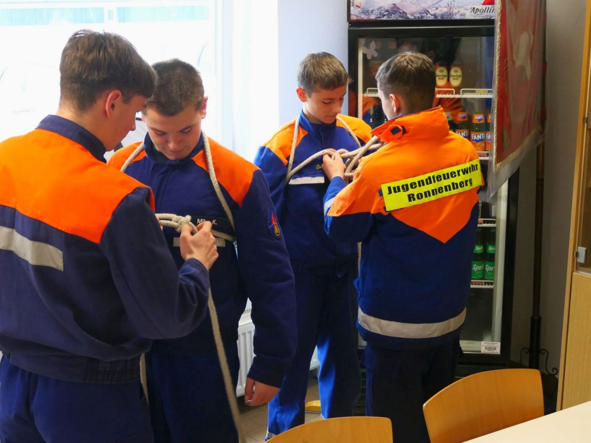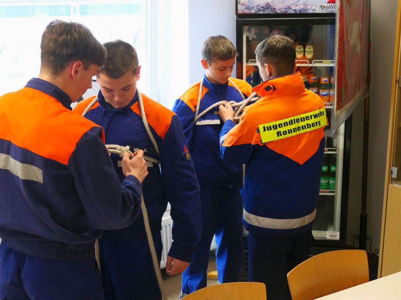 Bereits im Vorfeld hatten die 15- bis 18-jährigen ihr soziales und sportliches Engagement gezeigt, indem sie einen Erste-Hilfe-Kurs, ein Praktikum im sozialen Bereich oder das Deutsche Sportabzeichen absolvierten. Am Feuerwehrhaus haben die Jugendlichen dann noch einen speziellen Knoten zur Selbstrettung im Notfall gemacht, einen Schlauch innerhalb eines knappen Zeitlimits aus- und wieder eingerollt und in einer mündlichen Prüfung verschiedene Kleinlöschgeräte erklärt.