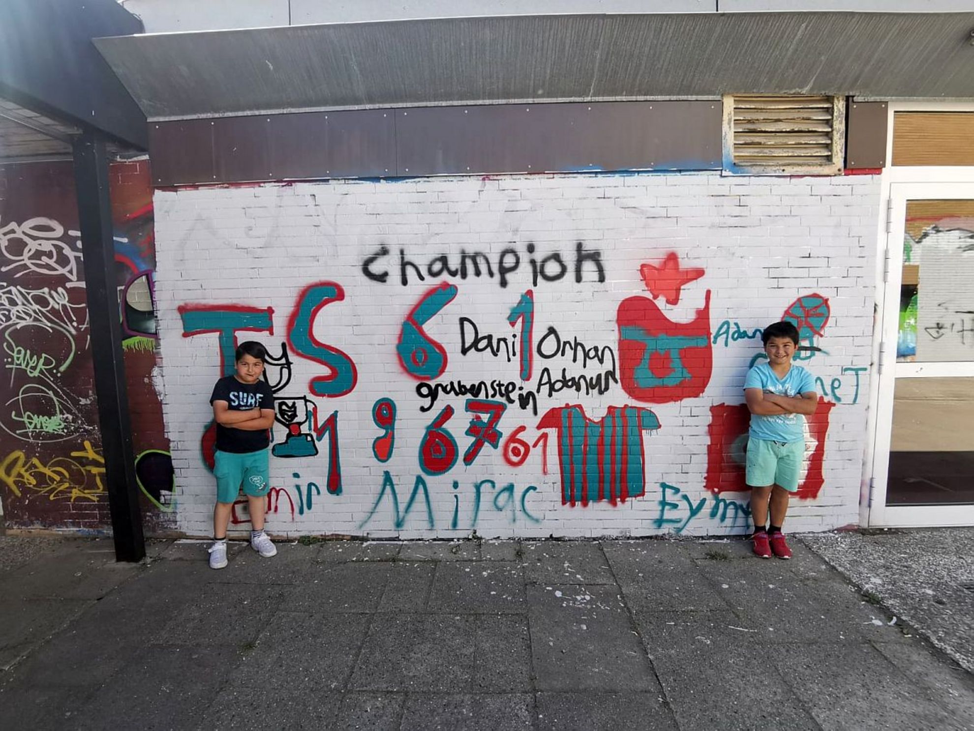Die Durchführung dieses Projektes war eine Idee der jugendlichen Besuchenden des Jugendtreffs. Sie wollten zum einen ihre Leidenschaft und Begeisterung für „Graffitis“ mit Interessierten teilen und zudem ein spannendes Ferienangebot für Kinder anbieten. Außer Kreativität lernten die Kinder Geduld und den Umgang mit den Farben, die nicht immer genau da landeten, wo sie hinsollten. Dass aber noch kein Meister vom Himmel gefallen ist, bestätigten auch Kai Schneidereit und Jannik Langer, die mit ihren zahlreichen Erfahrungen die Kinder anleiteten und ihnen Tipps und Tricks im Umgang mit der Spraydose verrieten.