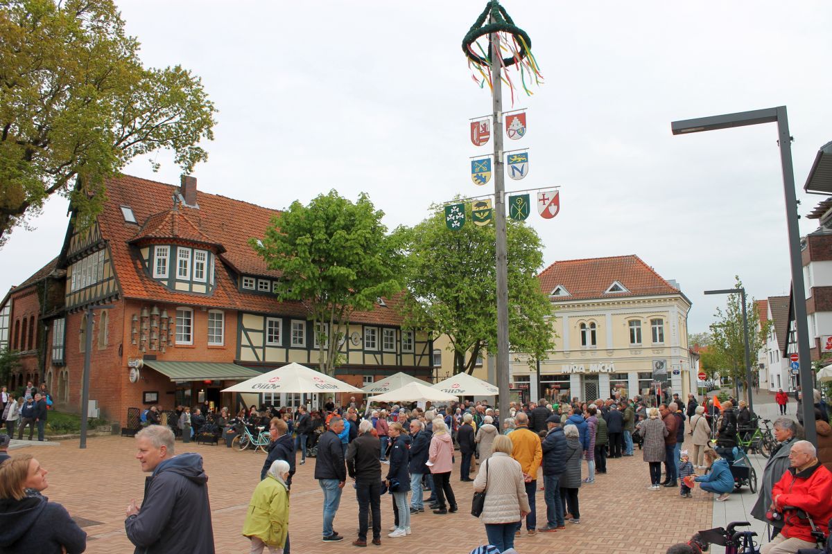 In der Kirche gibt es Musik am Klavier durch Kantor Christian Windhorst und eine Begrüßung durch Bürgermeister Malte Losert. Auch ein gemeinsames Singen ist angedacht. Der Heimatbund hält einen Bildervortrag. Auf dem Marktplatz wird es dann geselliger. Am Ausschank gibt es 100 Liter Freibier vor dem Marktrestaurant. Ab 18 Uhr gibt es ein Platzkonzert des Musikkorps der Original Calenberger. Anschließend beginnt die Maifeier unter dem Maibaum. Alle Bürger sind willkommen.
