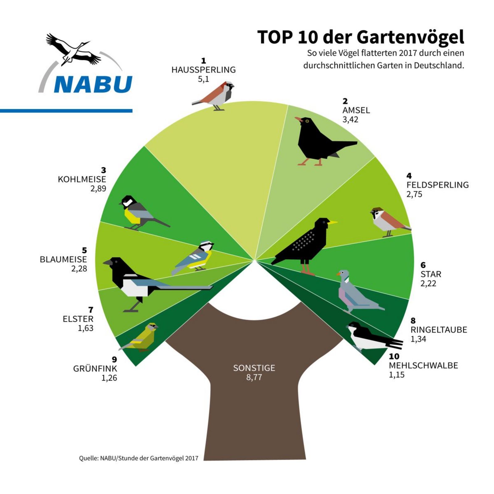 „Schulstunde der Gartenvögel“. Für kleine Vogelexperten hat die NAJU die „Schulstunde der Gartenvögel“ von Montag, 6. bis Freitag, 10. Mai, ins Leben gerufen. Ein NAJU-Aktionspaket versorgt teilnehmende Gruppen und Klassen mit Zählkarten, einem „Vogelbüchlein für die Hosentasche“ für jedes Kind, einem NAJU-Poster, auf dem Kinder die häufigsten Vogelarten in Deutschlands Gärten und ihre Besonderheiten kennenlernen, sowie einem Begleitheft. Weitere Informationen unter www.NAJU.de/sdg. Das Aktionspaket „Schulstunde der Gartenvögel“ kann gegen Einsendung eines Fünf-Euro-Scheins an NABU Niedersachsen, Stichwort ‚Schulstunde‘, Alleestraße 36, 30167 Hannover bestellt werden.