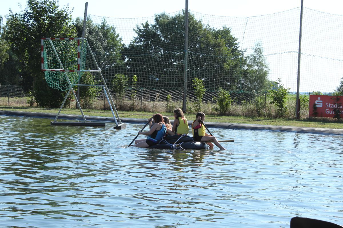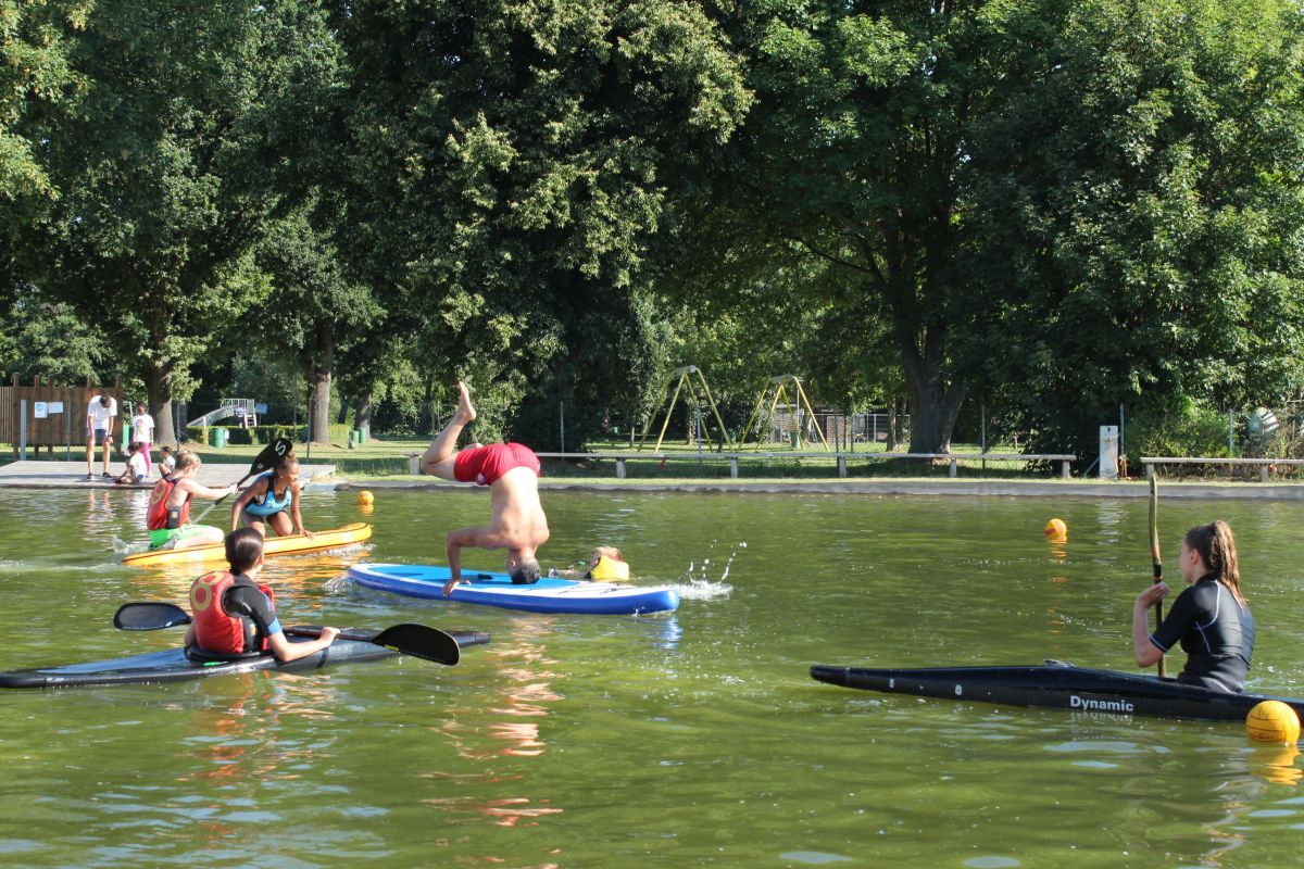 Dichtes Treiben herrscht auf dem Becken des Calenberger Canoe Clubs, Mädchen und Jungen in Booten und auf Stand-Up-Boards versuchen unter lautem Gekreische, einander zum Kentern zu bringen.