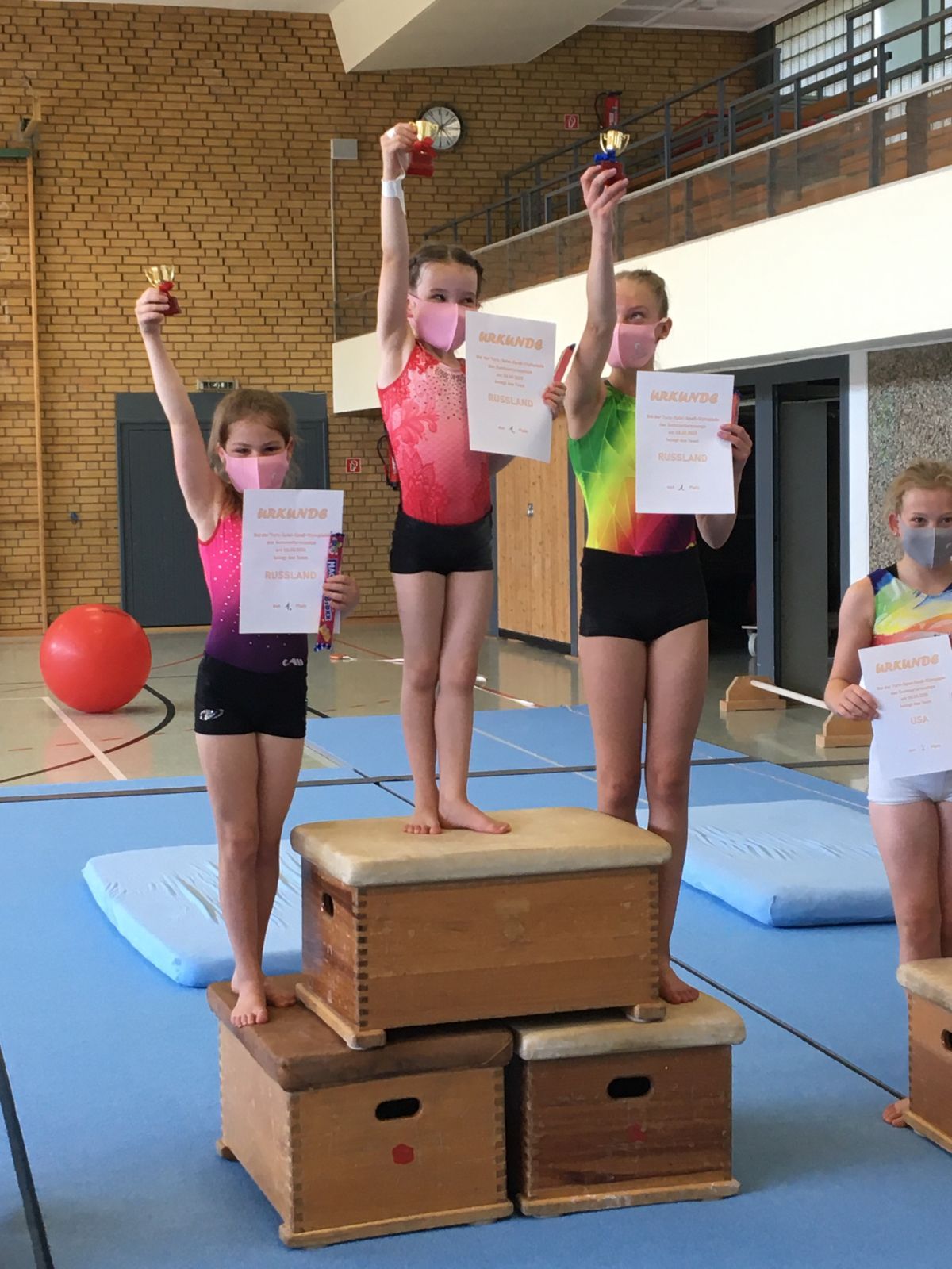 Eine besondere Freude war, dass die Geräte wegen der Ferien stehen bleiben konnten und nicht wie sonst auf- und abgebaut werden mussten. Das vermehrte Training führte schnell zu Verbesserungen und zu neu erlernten Elementen. Es kam trotz der hohen Temperaturen kaum zu Ermüdungserscheinungen, weil die Begeisterung der Mädchen so groß war.