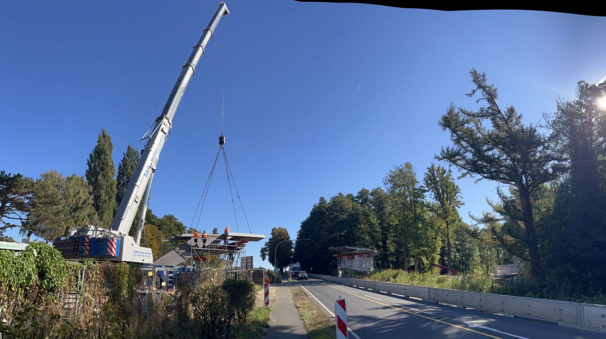 Vollsperrung der B65: Brückenteil wird bei Bad Nenndorf eingehoben