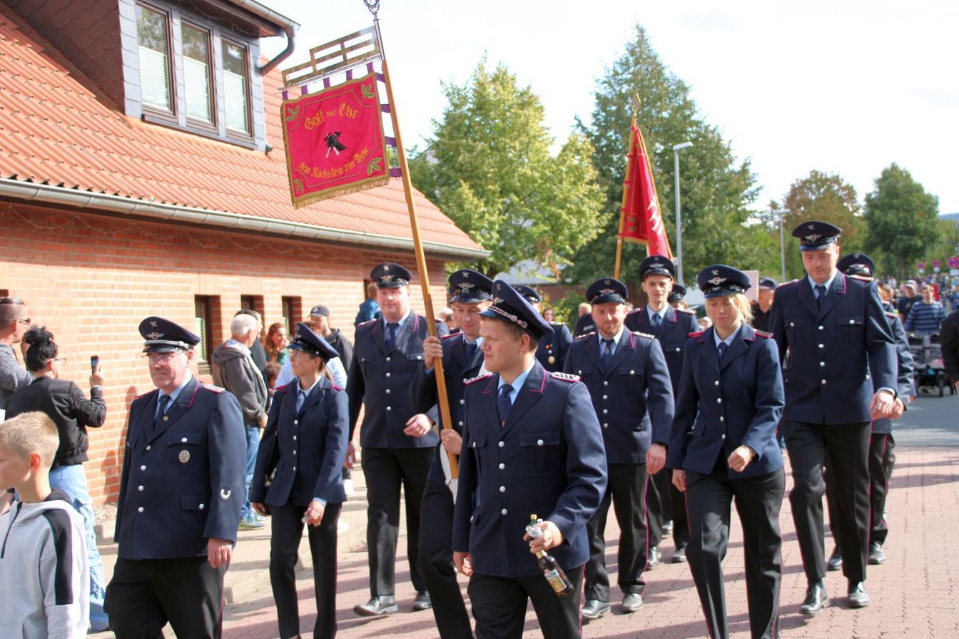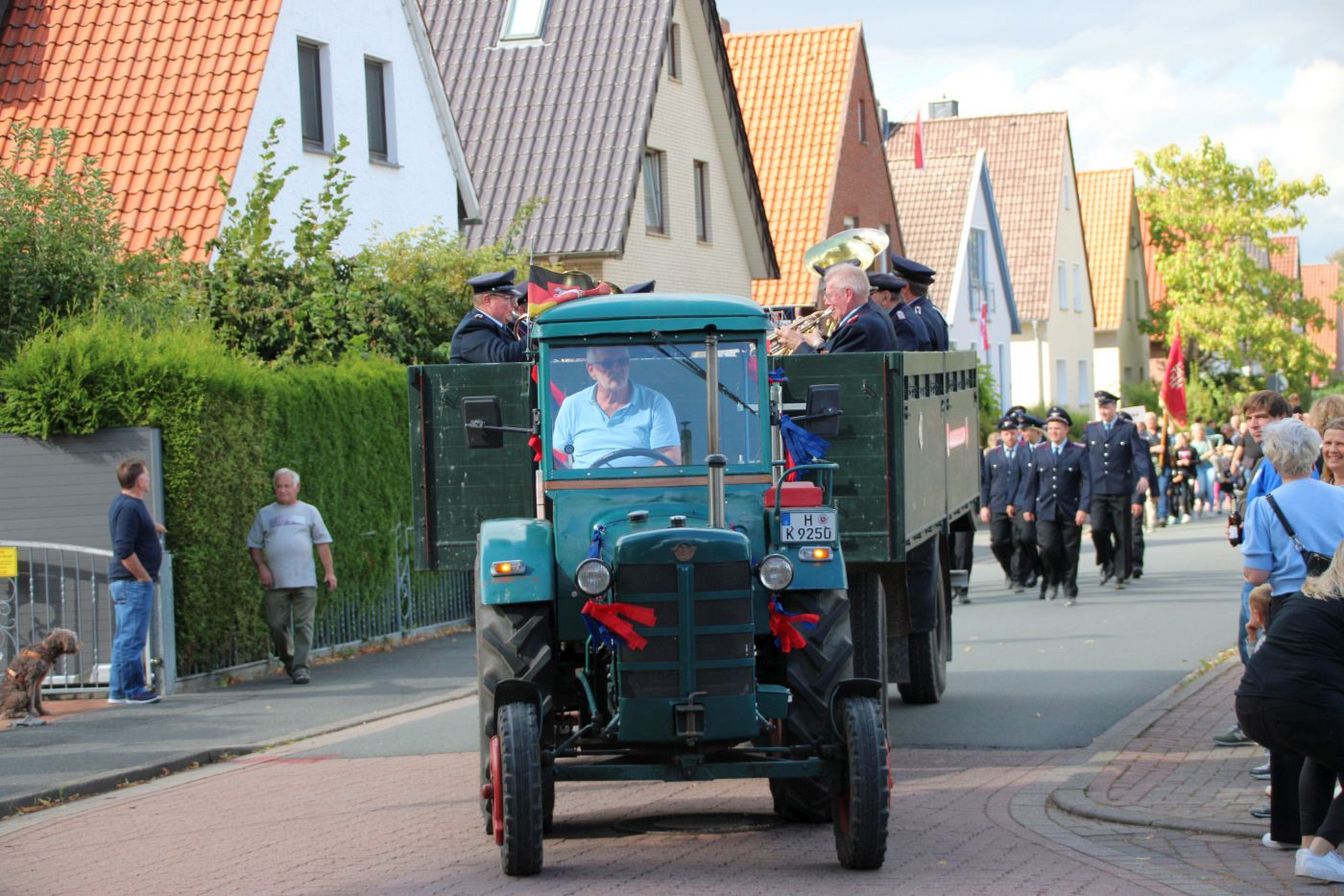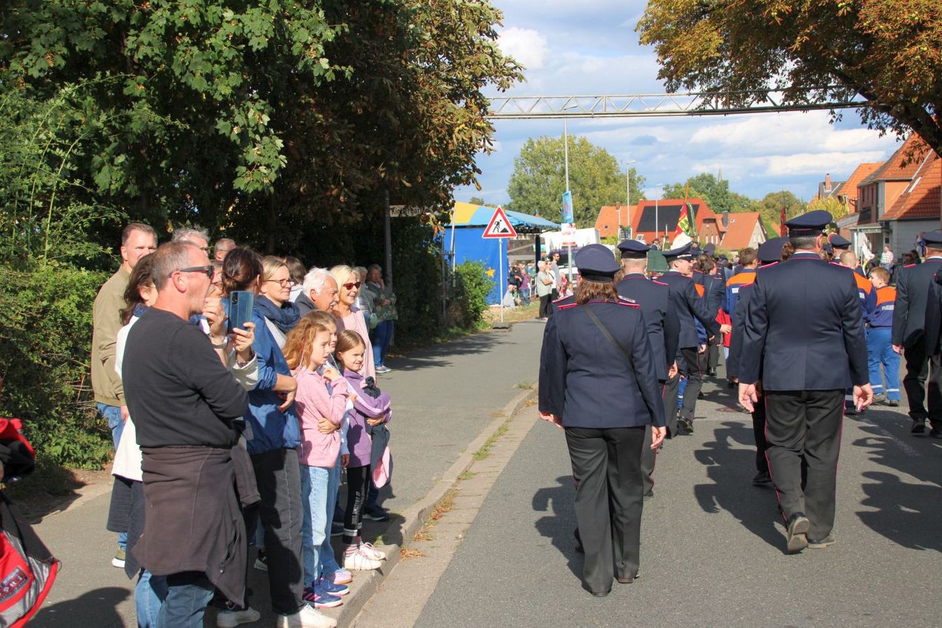 Am Freitagabend hatte das Fest mit einem Kommers offiziell begonnen. An einem überaus sonnigen Samstag erfreuten sich die zahlreichen Besucherinnen und Besucher erneut an der Kirmes mit Kinderkarussells, Autoscooter und weiteren Festbuden. Auch für das leibliche Wohl war gesorgt. Um 15 Uhr startete der große Festumzug durch den Ort, an dem sich neben der Feuerwehr Kirchdorf auch verschiedene andere Ortswehren aus Barsinghausen und Wennigsen sowie weitere Vereine beteiligten. Ortsbrandmeister Markus Plackner zeigte sich sehr zufrieden mit dem bisherigen Verlauf: „Unser Fest wird super angenommen. Gestern wurde im Zelt noch lange gefeiert und das Wetter heute passt einfach perfekt.“