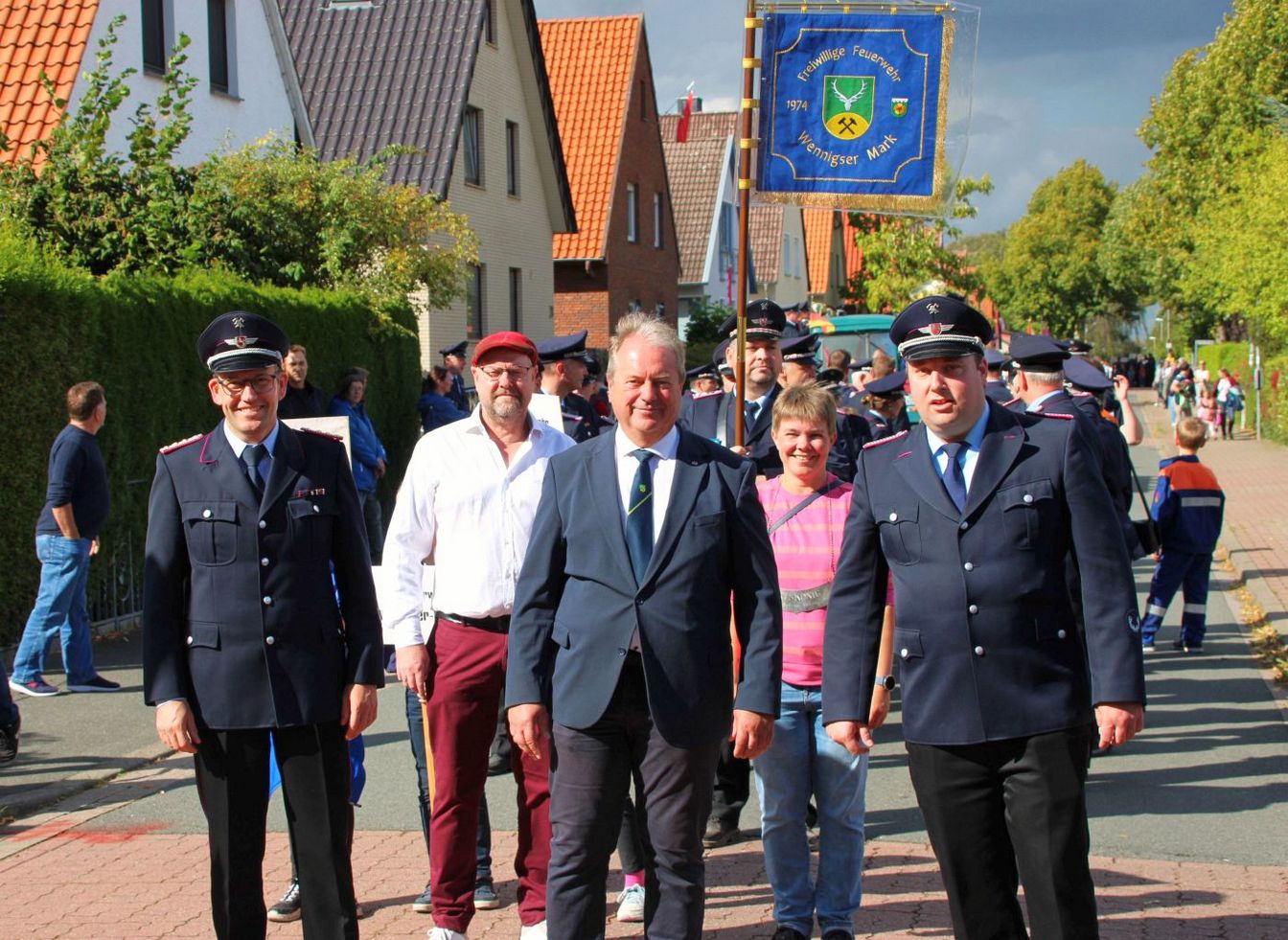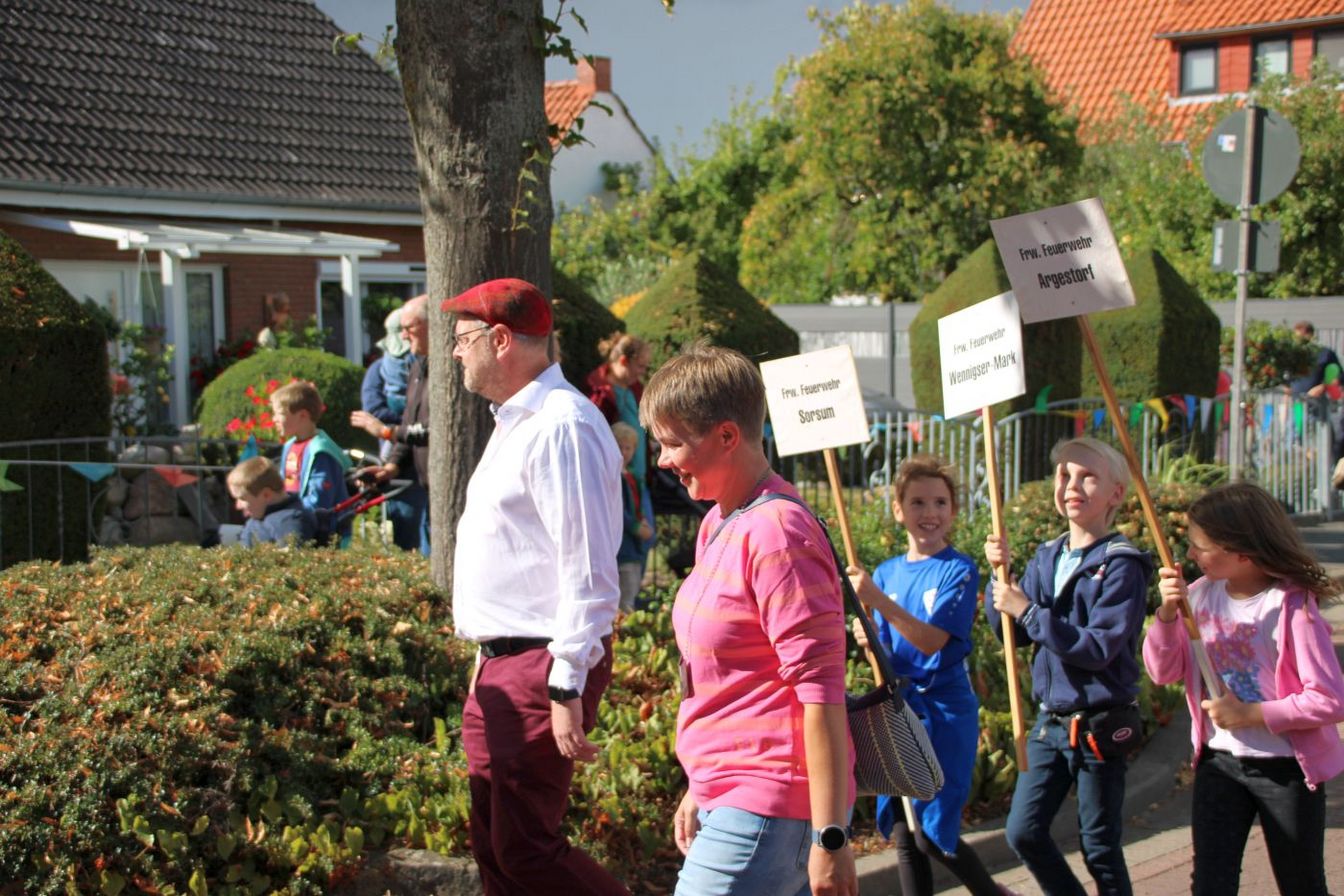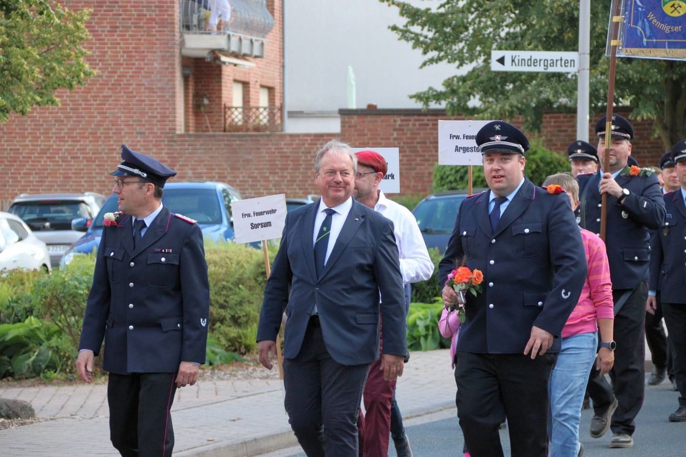 Am Freitagabend hatte das Fest mit einem Kommers offiziell begonnen. An einem überaus sonnigen Samstag erfreuten sich die zahlreichen Besucherinnen und Besucher erneut an der Kirmes mit Kinderkarussells, Autoscooter und weiteren Festbuden. Auch für das leibliche Wohl war gesorgt. Um 15 Uhr startete der große Festumzug durch den Ort, an dem sich neben der Feuerwehr Kirchdorf auch verschiedene andere Ortswehren aus Barsinghausen und Wennigsen sowie weitere Vereine beteiligten. Ortsbrandmeister Markus Plackner zeigte sich sehr zufrieden mit dem bisherigen Verlauf: „Unser Fest wird super angenommen. Gestern wurde im Zelt noch lange gefeiert und das Wetter heute passt einfach perfekt.“