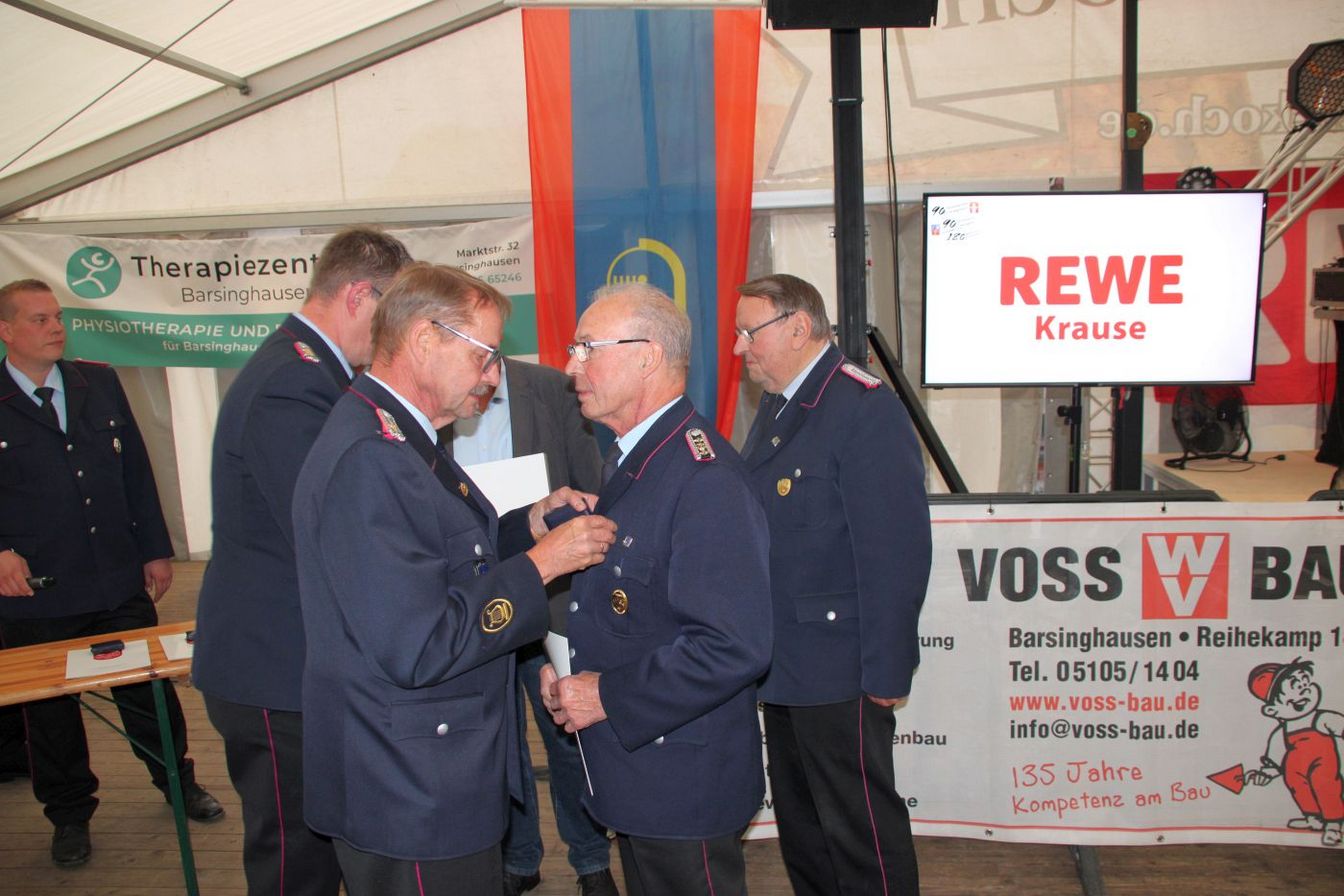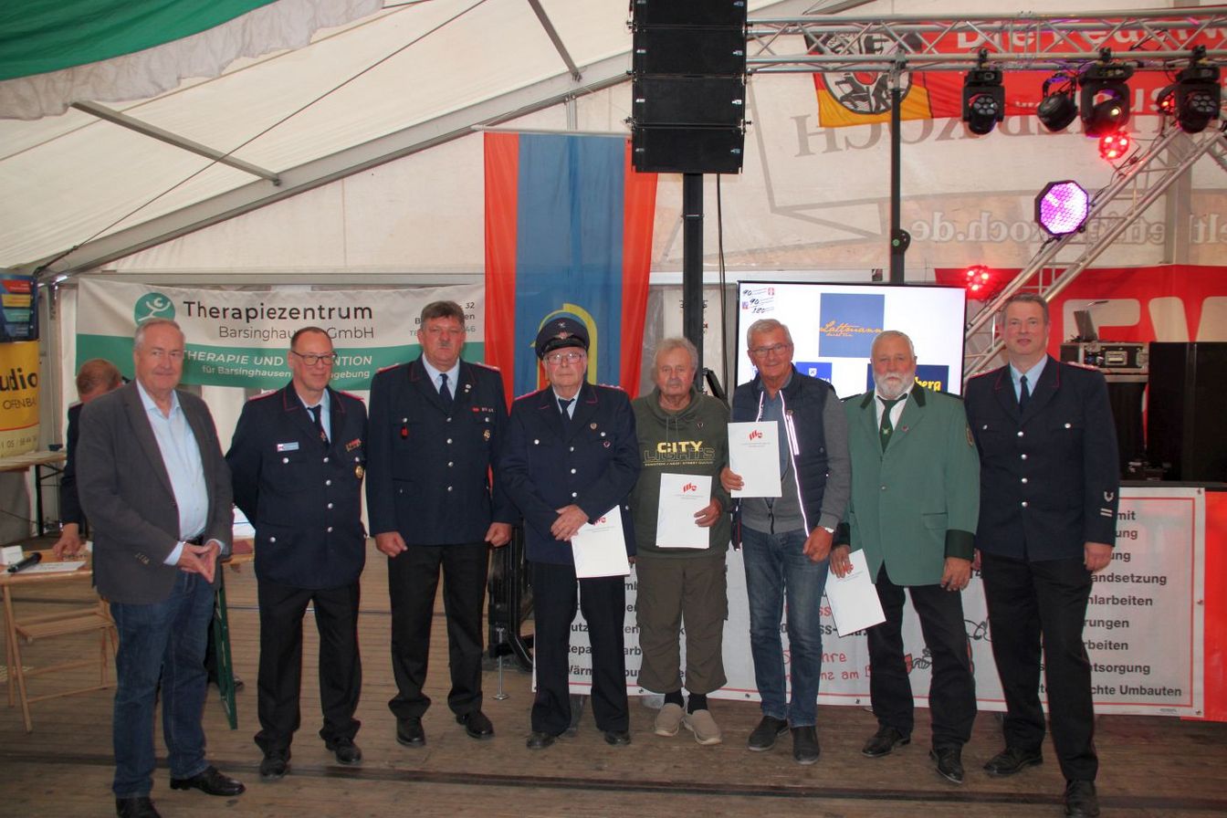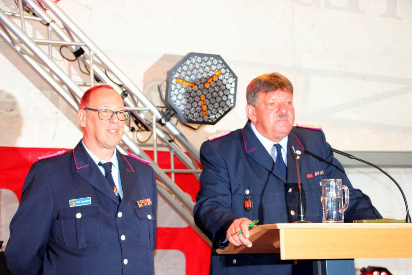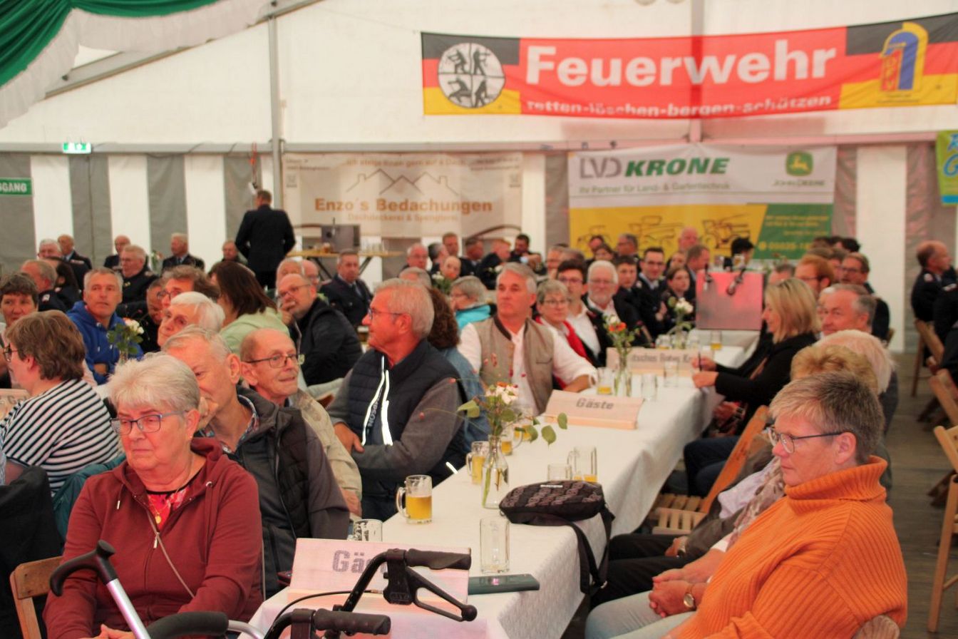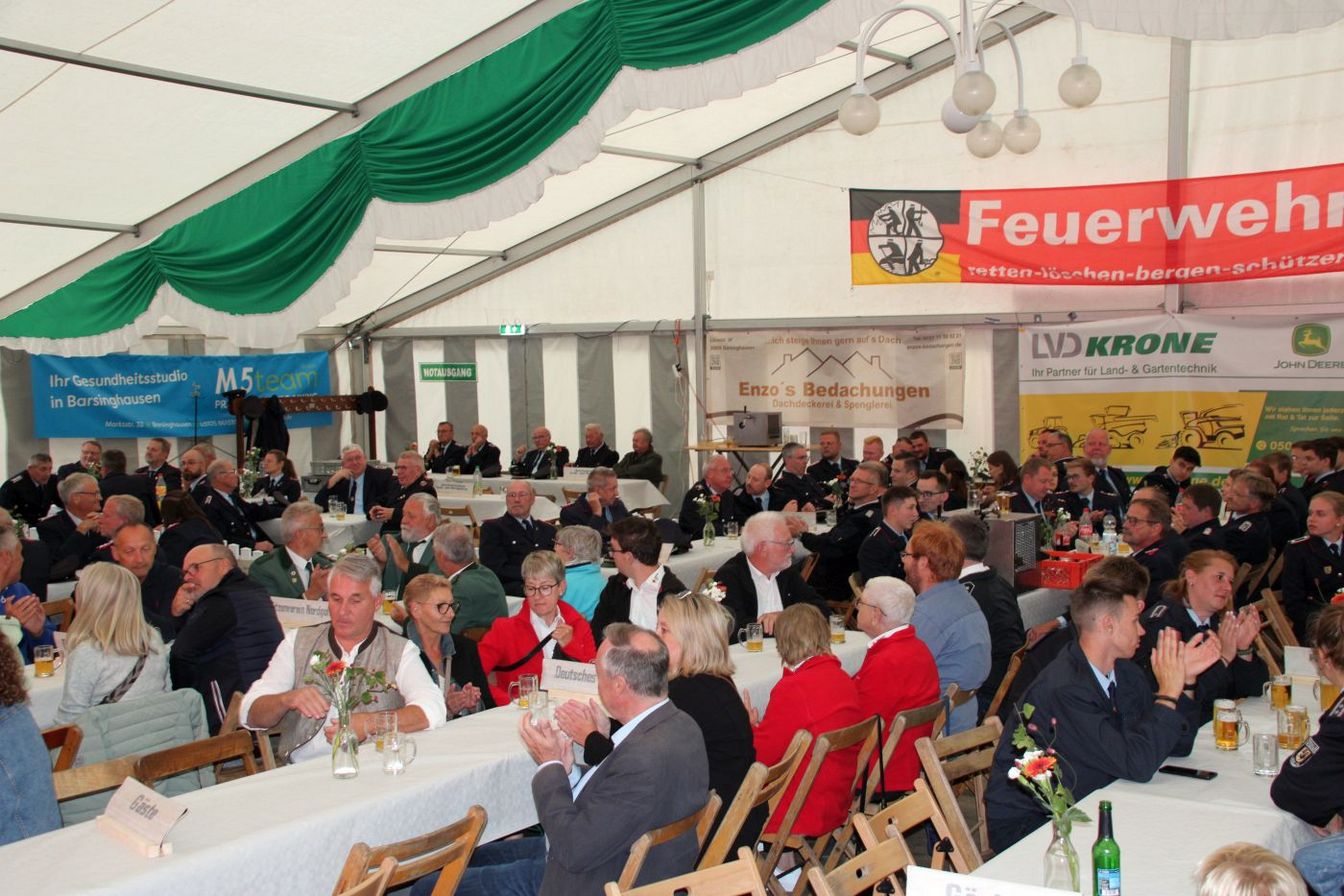 Die Ortsbrandmeister Dirk Engelmann (Nordgoltern) und Matthias Bartels (Großgoltern) begrüßten die Gäste im Festzelt hinter dem Gerätehaus. Zuvor gab es schon eine Kranzniederlegung an den Ehrenmalen. Es wurden Vertreter aus anderen Ortswehren und der Feuerwehrführung, der Politik und der Stadtverwaltung sowie Gäste aus beiden Ortsteilen begrüßt. Die Ortsbrandmeister dankten auch dem Festausschuss und Malte Westerschell, die diese Feierlichkeiten mit ihrer Organisation erst möglich machten.