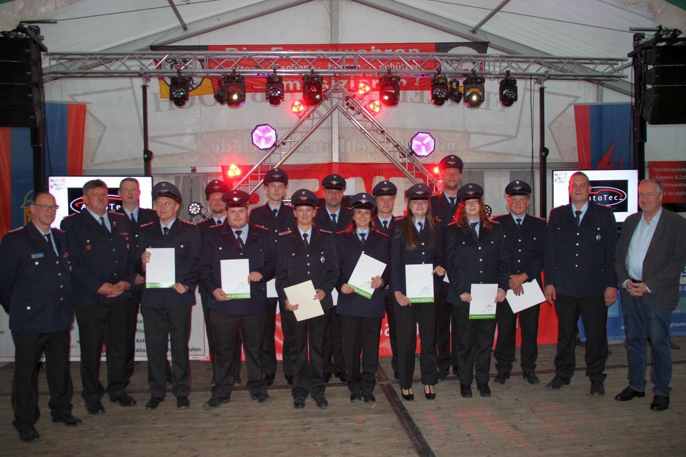 Janina Kuhlmann ist nun Feuerwehrfrau und Lorenz Noltemeyer Feuerwehrmann. Stefan Forst, Michelle Burkat und Jasper Dörner sind nun Oberfeuerwehrmänner bzw. Oberfeuerwehrfrau. Hauptfeuerwehrmann/frau dürfen sich nun Lisa Bartels, Alexander Witte und Marvin Wienhold nennen. Justin Jahn wurde zum Löschmeister befördert.