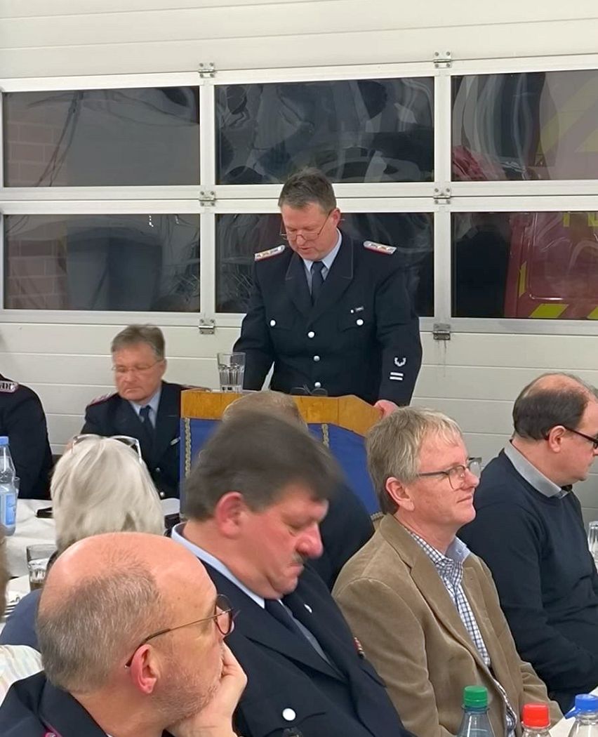 Bürgermeister Henning Schünhof würdigte in seinem Grußwort das außergewöhnliche Engagement der Feuerwehr. 32 aktive Mitglieder seien für ein kleines Dorf eine stolze Zahl. Zudem stellte er in Aussicht, dass zeitnah eine Begehung der Feuerwehrliegenschaft stattfinden soll, um Möglichkeiten für einen Unterstand für den Mannschaftstransportwagen zu prüfen.