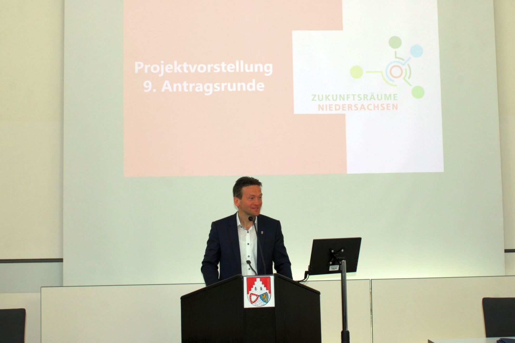 Ministerin Melanie Walter (Ministerin für Europa und Regionale Landesentwicklung in der Staatskanzlei) begrüßte die Vertreter der Kommunen im Rathaus Gehrden: „Wir haben die Übergabe bewusst als gemeinsame Veranstaltung organisiert, um die Übergabe auch als Netzwerktreffen der Kommunen zu nutzen und untereinander ins Gespräch zu kommen.“ Die Projekte, die im Förderprojekt „Zukunftsräume Niedersachsen“ angemeldet werden, sind laut Ministerin oft Ideen, die ihr Entstehen oft aus Bürgerbeteiligungen heraus hätten. „Dies sind Ideen und Projekte, die oft nicht in die strengen Richtlinien von anderen Förderprogrammen passen und wo oft das Geld in den Haushalten der Kommunen fehlt“, freute sich Ministerin auf die Projektvorstellungen.