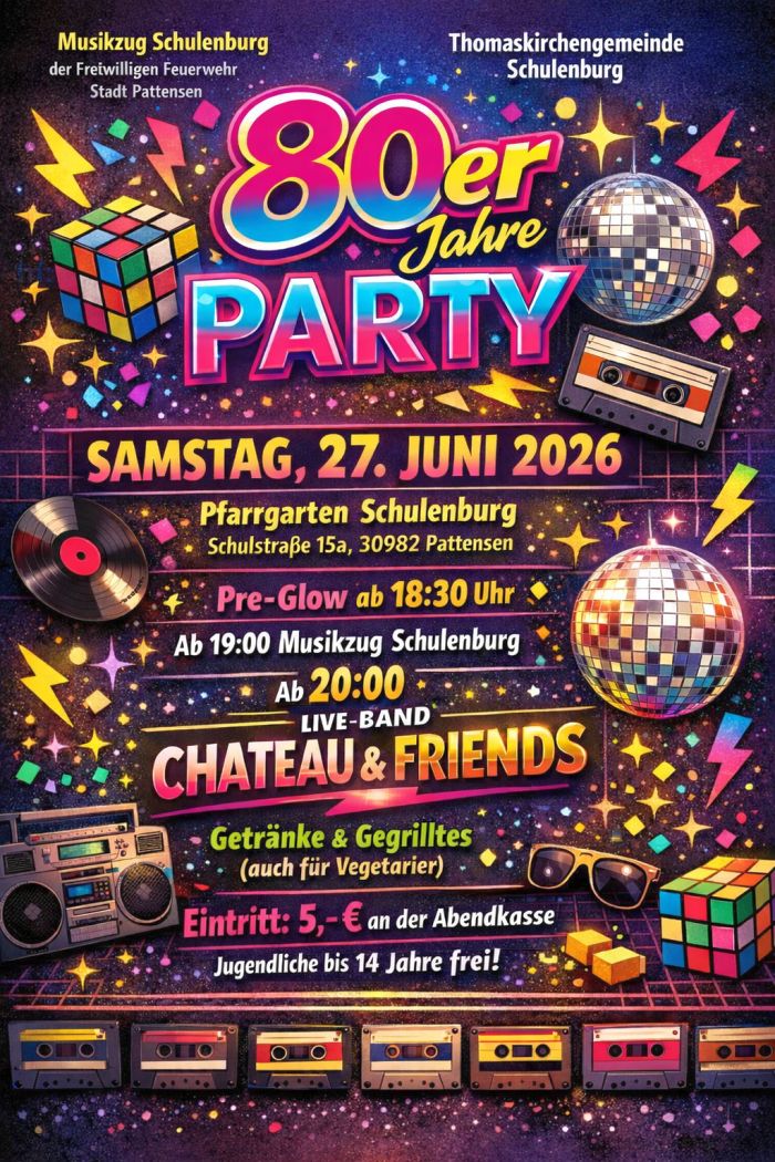 Pattensen. Schulenburg wird bunt, laut und nostalgisch: Am Samstag, 27. Juni, lädt der Musikzug Schulenburg der Freiwilligen Feuerwehr Pattensen gemeinsam mit der Thomaskirchengemeinde zur großen „80er Jahre Party“ ein.