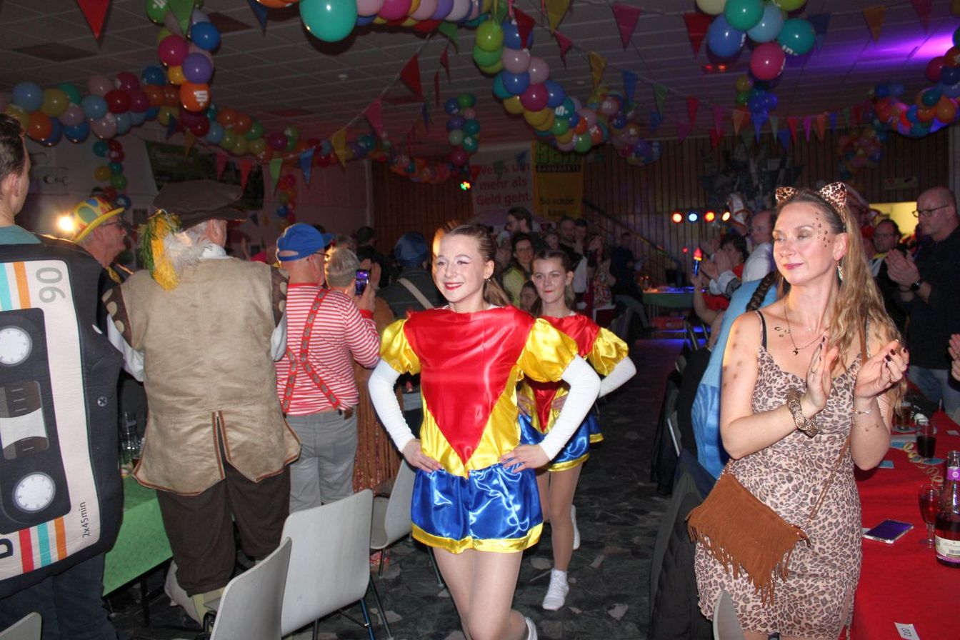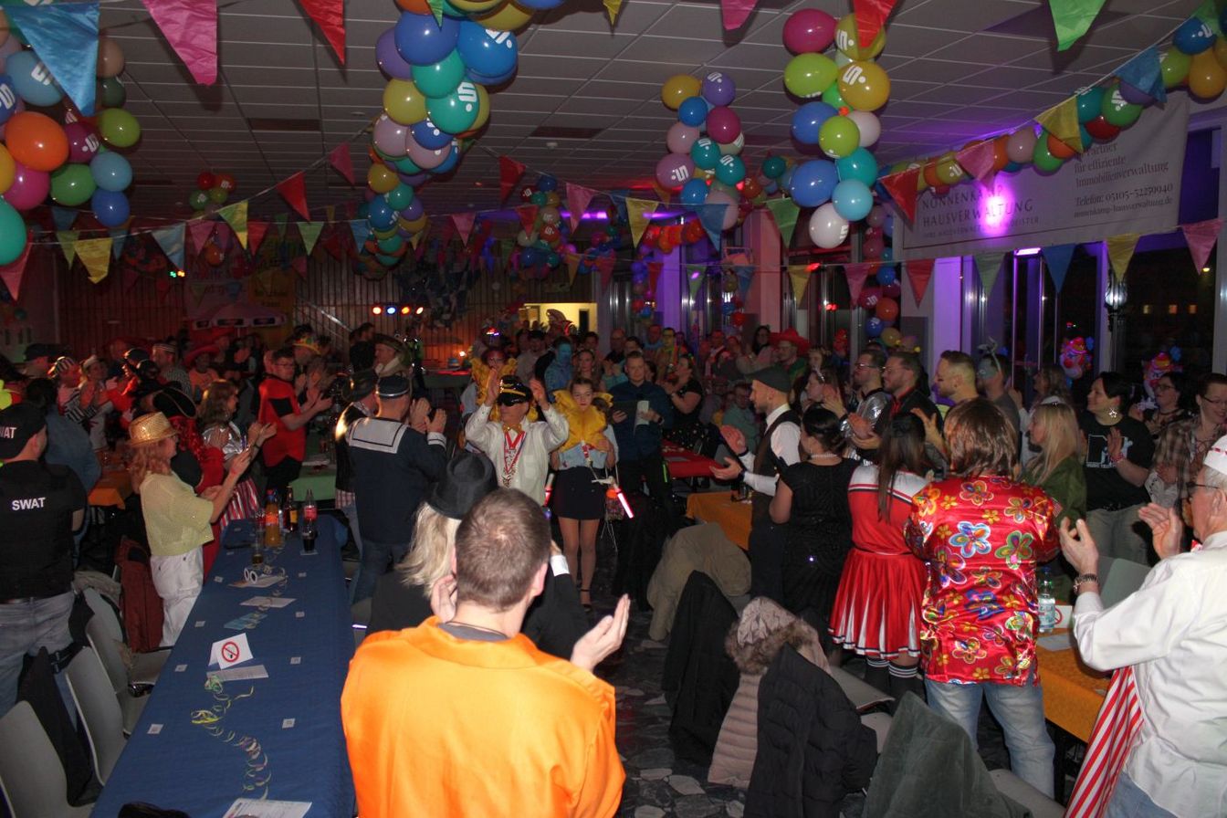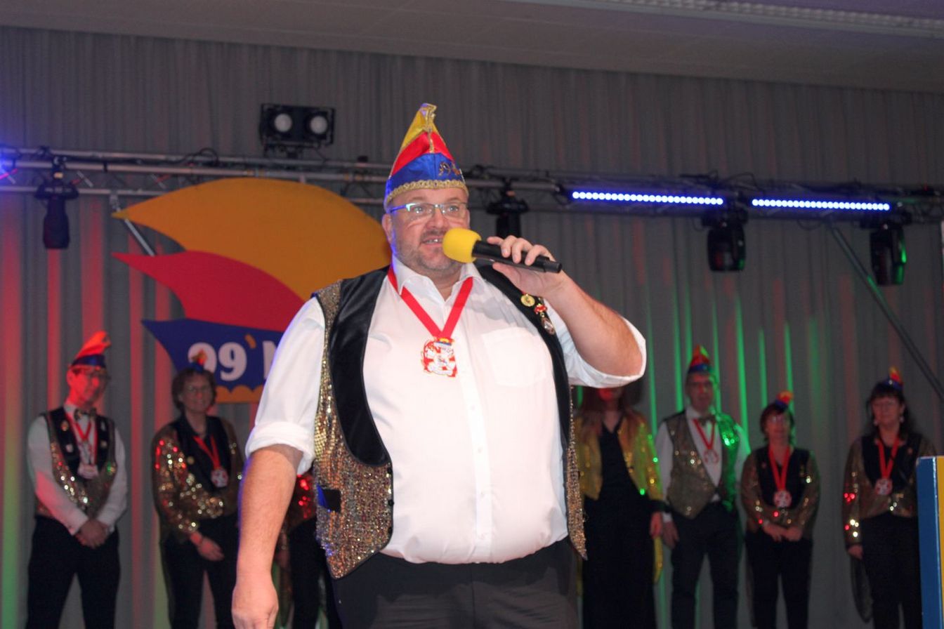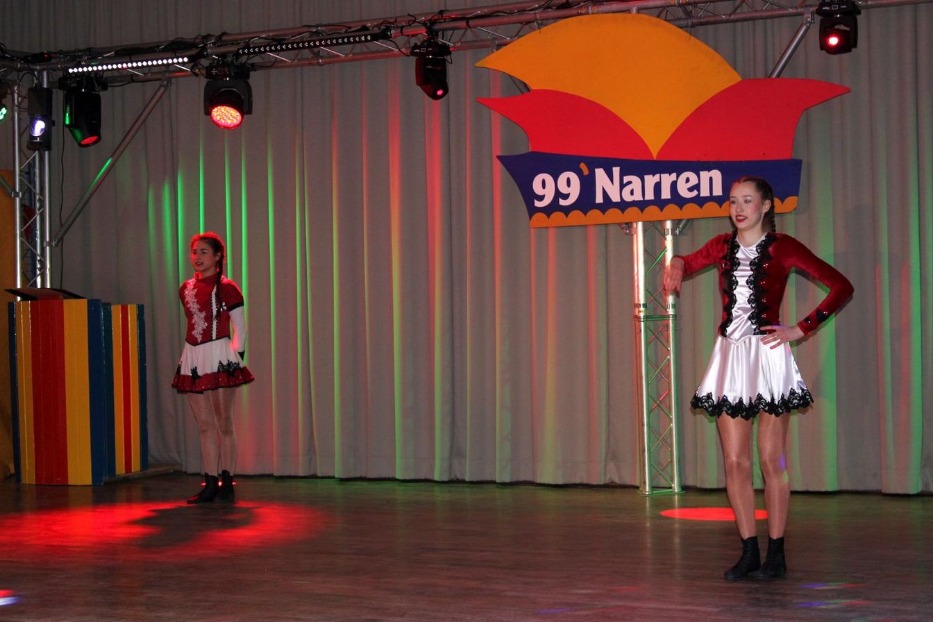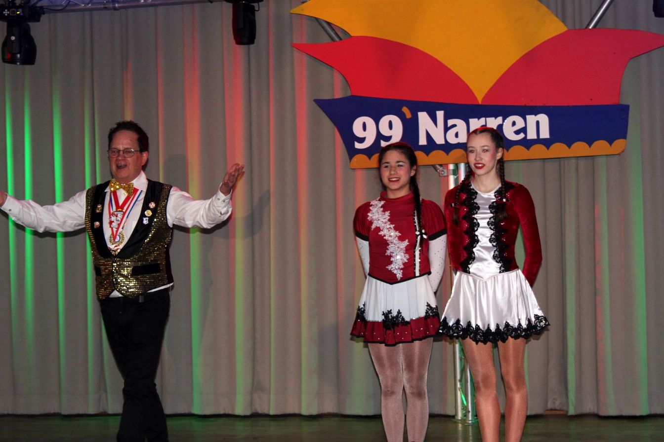 Die ausverkaufte Halle wurde von Wolfgang Pardey und Andreas Bröder begrüßt. Moderiert wurde die Karnevalsfeier erneut von Holger Heine. Auf dem Programm standen dann die Tanzmariechen aus Ricklingen und Rainer Thon als „Der Therapeut“. Besonders stolz zeigte sich der Vorsitzende Pardey über Mina Bröder und Emma Zimmer. Die beiden jungen Tänzerinnen kommen aus dem Verein und standen mit ihren eigenen Tanznummern zum ersten Mal auf der Bühne. „Sogar ihre Kostüme haben sie selbst gestaltet“, so Pardey zum Nachwuchs der ’99er Narren. Für Begeisterung sorgten auch die Tanzgruppe aus Ricklingen, die Garde aus dem Partnerverein aus Apelern.