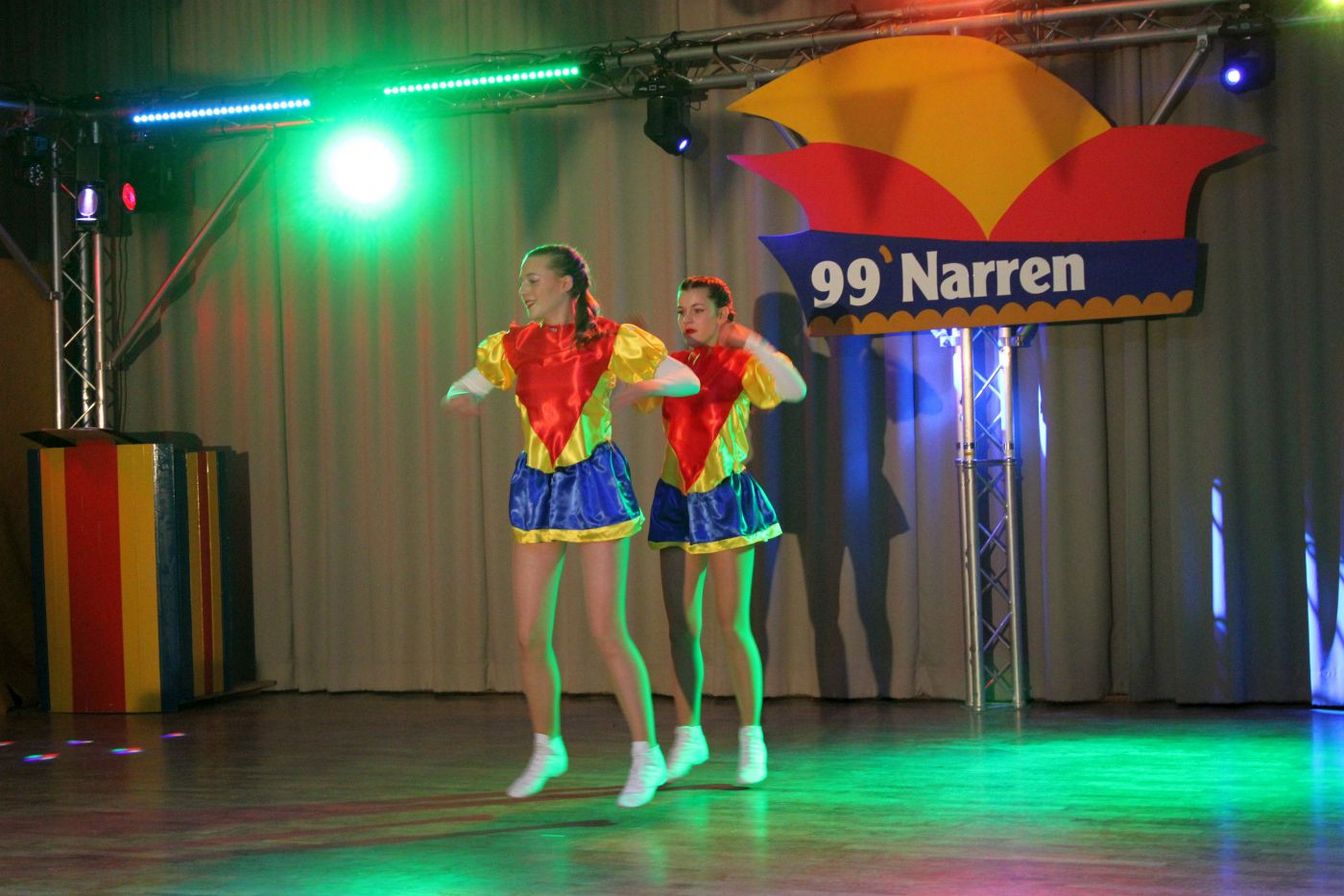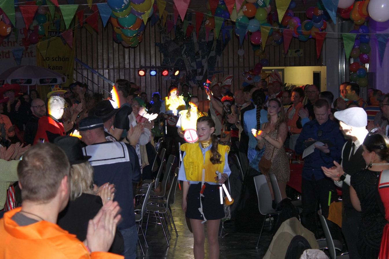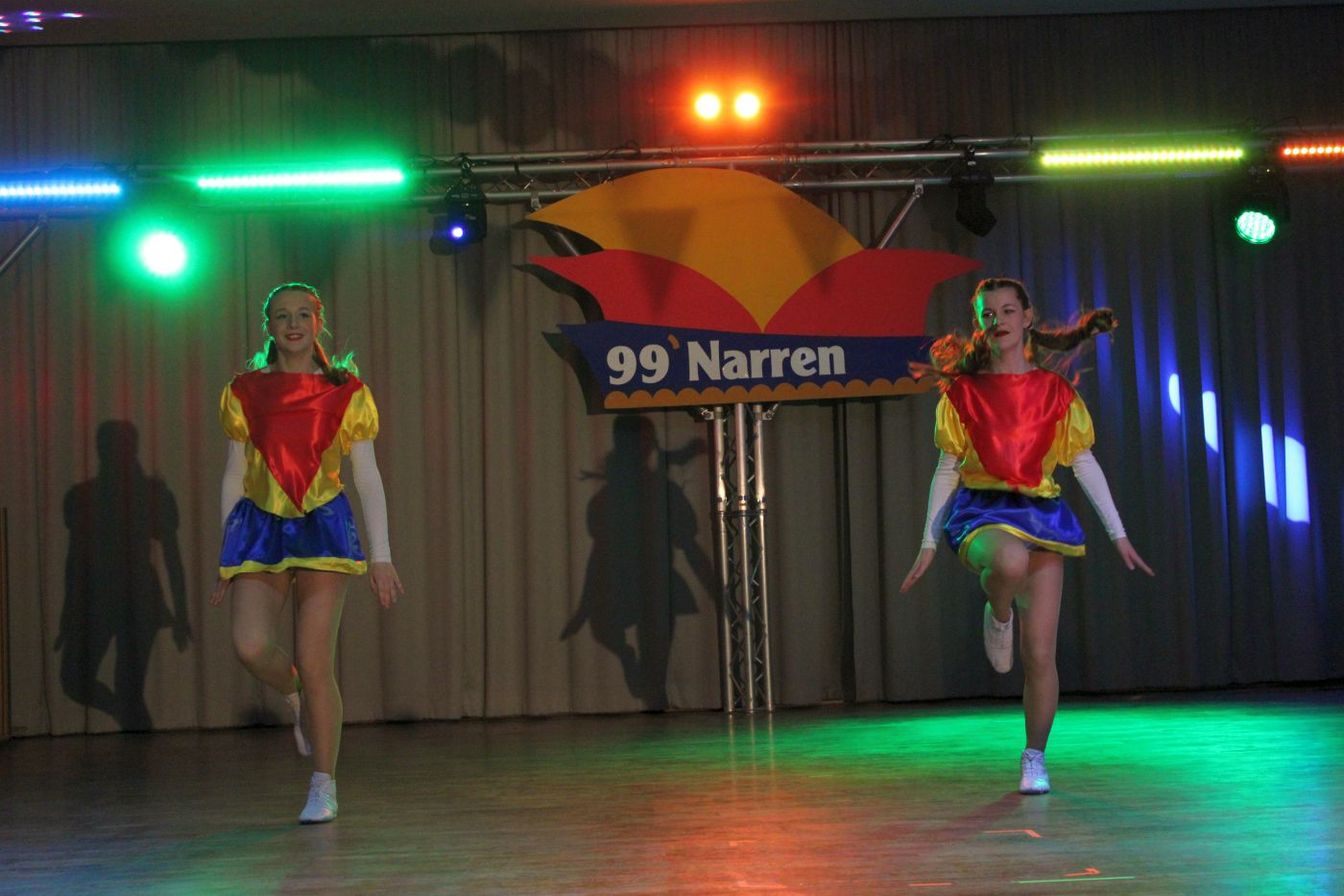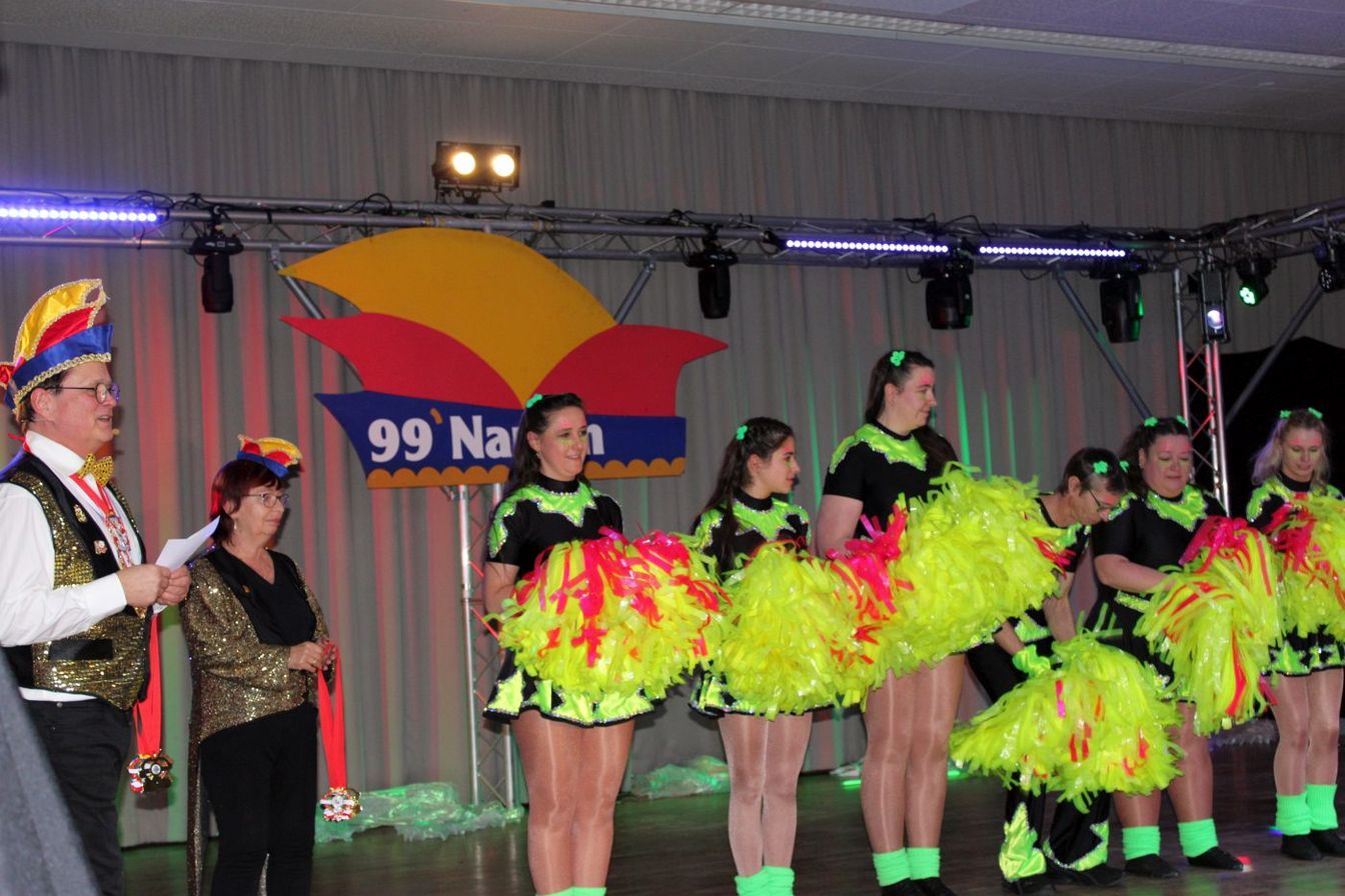 Die ausverkaufte Halle wurde von Wolfgang Pardey und Andreas Bröder begrüßt. Moderiert wurde die Karnevalsfeier erneut von Holger Heine. Auf dem Programm standen dann die Tanzmariechen aus Ricklingen und Rainer Thon als „Der Therapeut“. Besonders stolz zeigte sich der Vorsitzende Pardey über Mina Bröder und Emma Zimmer. Die beiden jungen Tänzerinnen kommen aus dem Verein und standen mit ihren eigenen Tanznummern zum ersten Mal auf der Bühne. „Sogar ihre Kostüme haben sie selbst gestaltet“, so Pardey zum Nachwuchs der ’99er Narren. Für Begeisterung sorgten auch die Tanzgruppe aus Ricklingen, die Garde aus dem Partnerverein aus Apelern.
