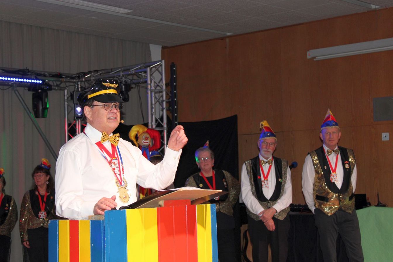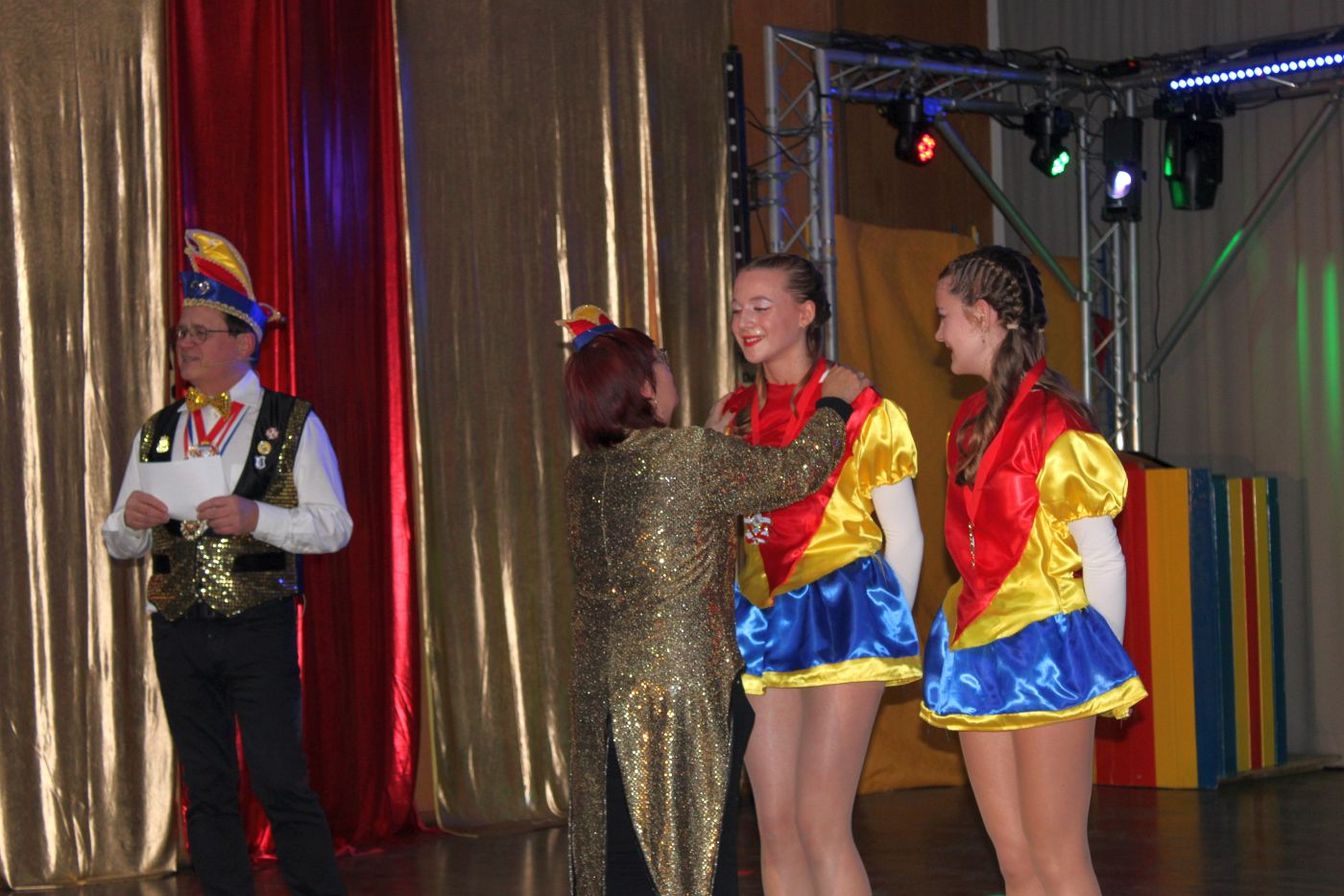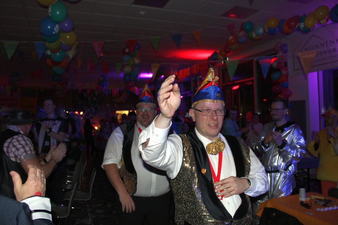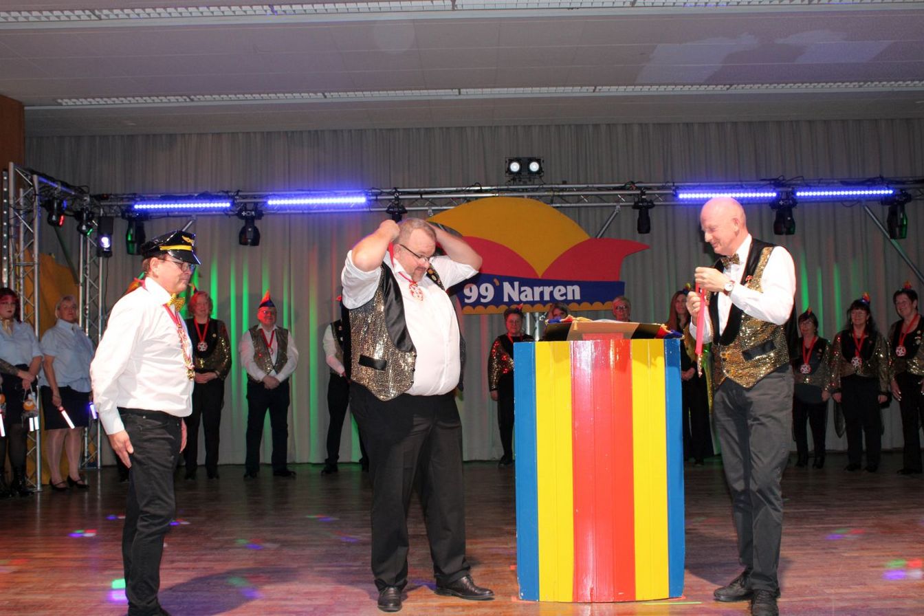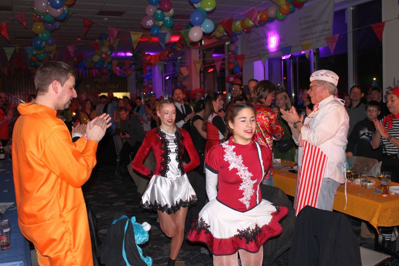 Die ausverkaufte Halle wurde von Wolfgang Pardey und Andreas Bröder begrüßt. Moderiert wurde die Karnevalsfeier erneut von Holger Heine. Auf dem Programm standen dann die Tanzmariechen aus Ricklingen und Rainer Thon als „Der Therapeut“. Besonders stolz zeigte sich der Vorsitzende Pardey über Mina Bröder und Emma Zimmer. Die beiden jungen Tänzerinnen kommen aus dem Verein und standen mit ihren eigenen Tanznummern zum ersten Mal auf der Bühne. „Sogar ihre Kostüme haben sie selbst gestaltet“, so Pardey zum Nachwuchs der ’99er Narren. Für Begeisterung sorgten auch die Tanzgruppe aus Ricklingen, die Garde aus dem Partnerverein aus Apelern.