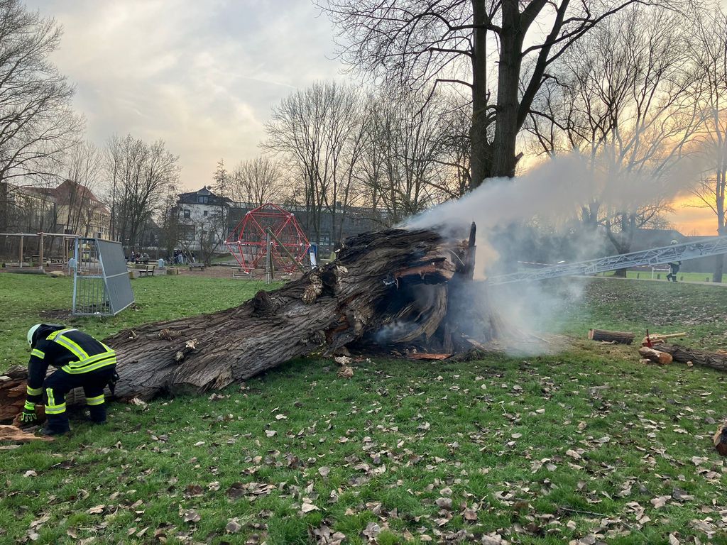 Baum wird durch Feuerwerksböller in Brand gesetzt