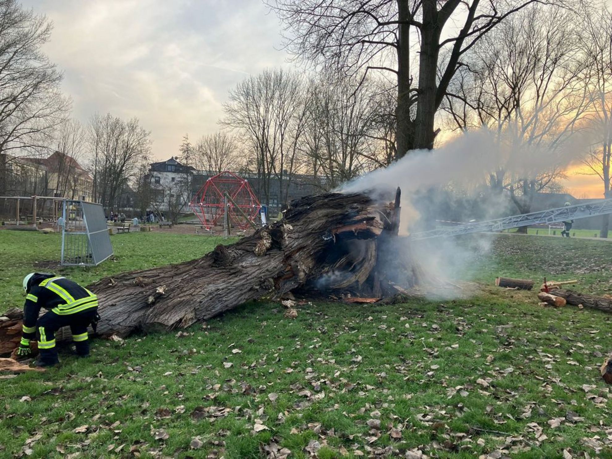 Baum wird gelöscht. Foto: Ortsfeuerwehr Pattensen.
