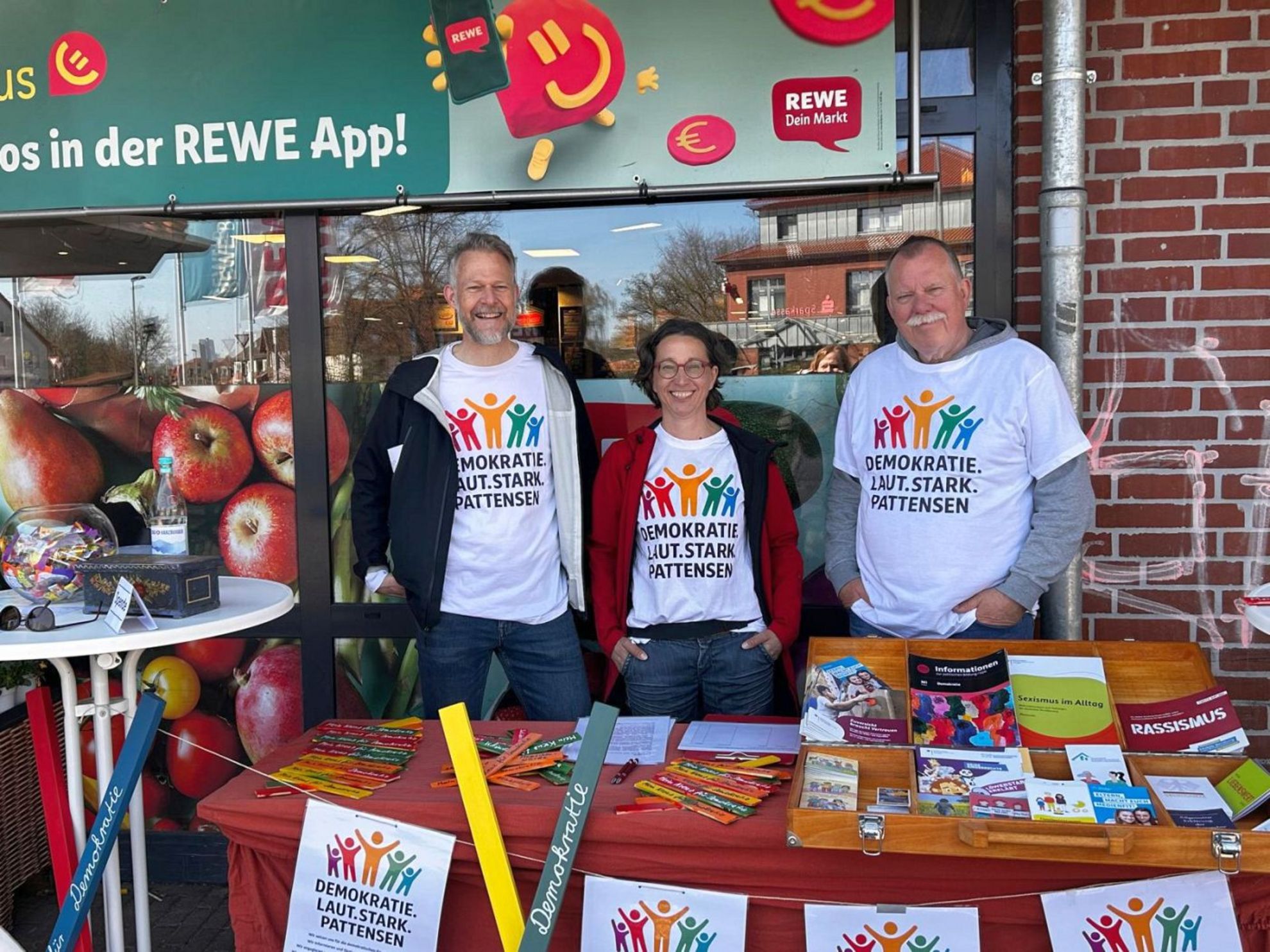Ziel des Infostandes war es auch, Pattenser Bürger zur Mitarbeit zu gewinnen und um Mitglieder zu werben. Dass das Thema Demokratie die Menschen vor Ort bewegt zeigte sich darin, dass spontan mehrere Mitgliedsformulare ausgefüllt und auch Zusagen für eine aktive Mitarbeit gegeben wurden. Darüber hinaus wurde auch die Spendendose gefüttert.