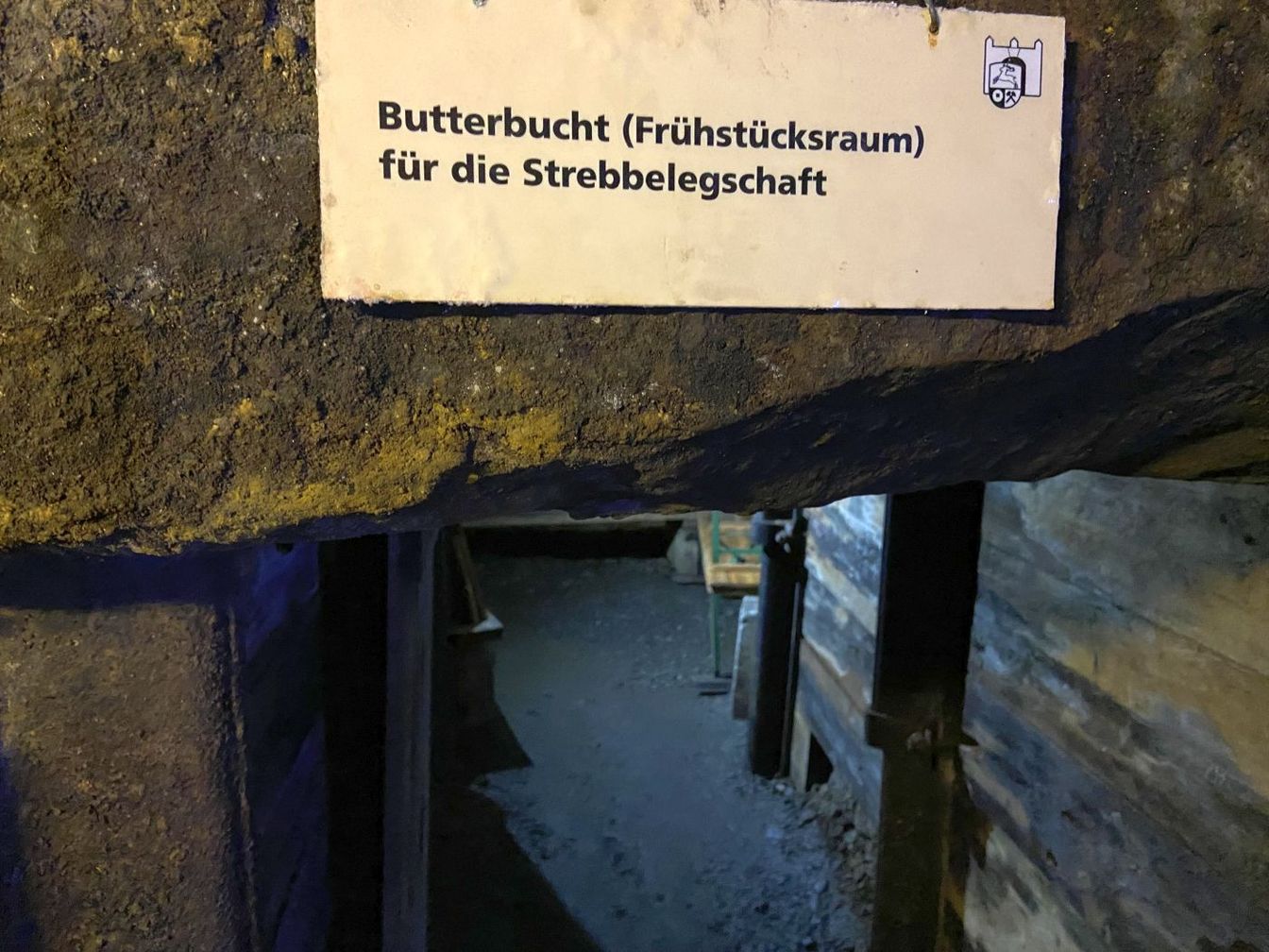 Anhand einer Kreidezeichnung am Gestein ist zu erkennen, wie wenig Kohle, wie viel Gestein und noch mehr Wasser aus dem Stollen geholt wurde – Schwerstarbeit. Da geht es heutzutage im Besucherbergwerk entspannter zu. Gerade in der Sprengkammer bietet der Veranstalter die Vorzüge des modernen Lebens an. „Wir bieten Biereinfahrten an. Dann wird nach einer Stollenführung in die Sprengkammer eingekehrt und es gibt Bier und Essen“, berichtet der Grubenführer, „Aufgrund der Sicherheitsbestimmung ist das alles im Rahmen, jedoch ist die Stimmung der Teilnehmer immer gut und es wird gerne angenommen.“