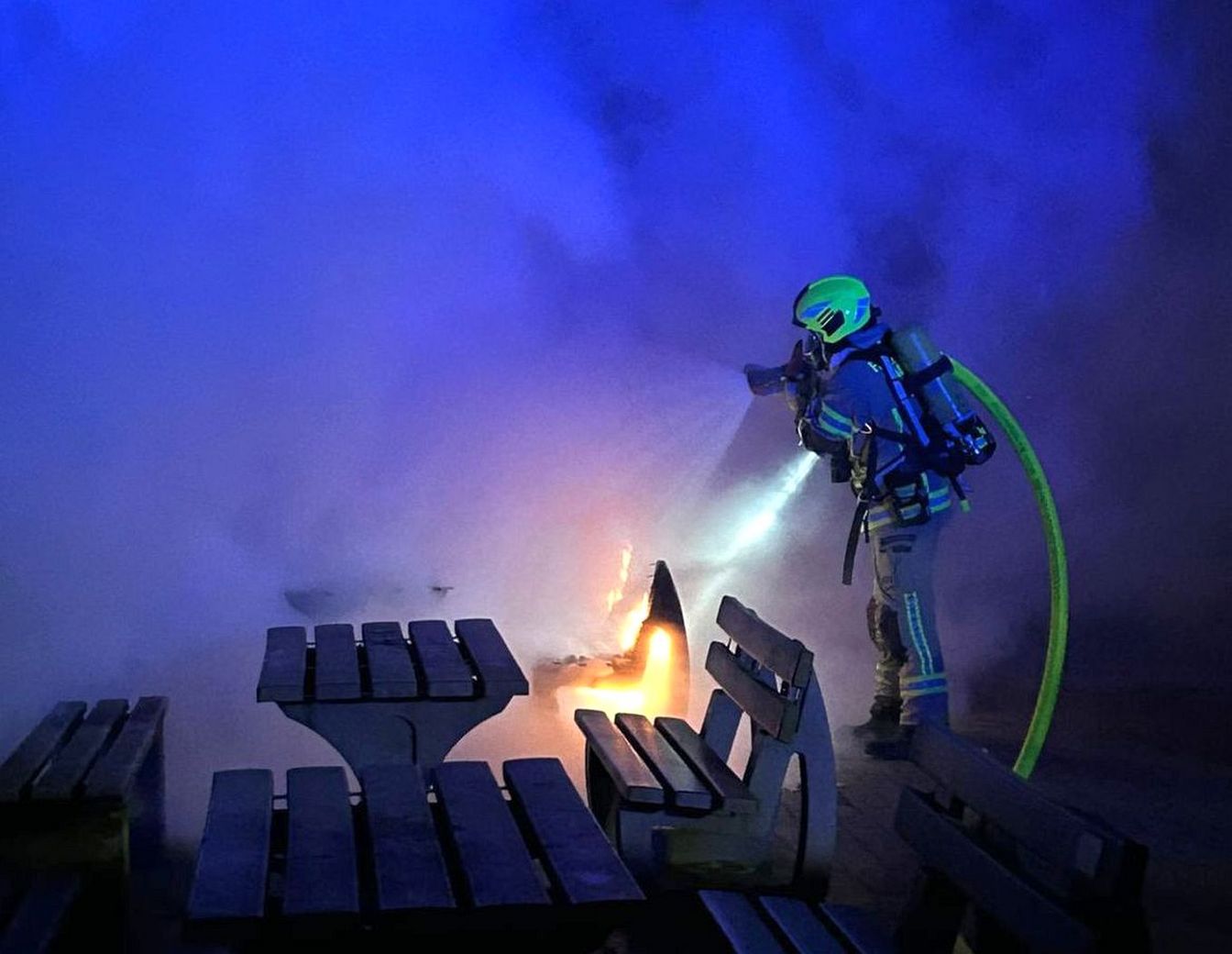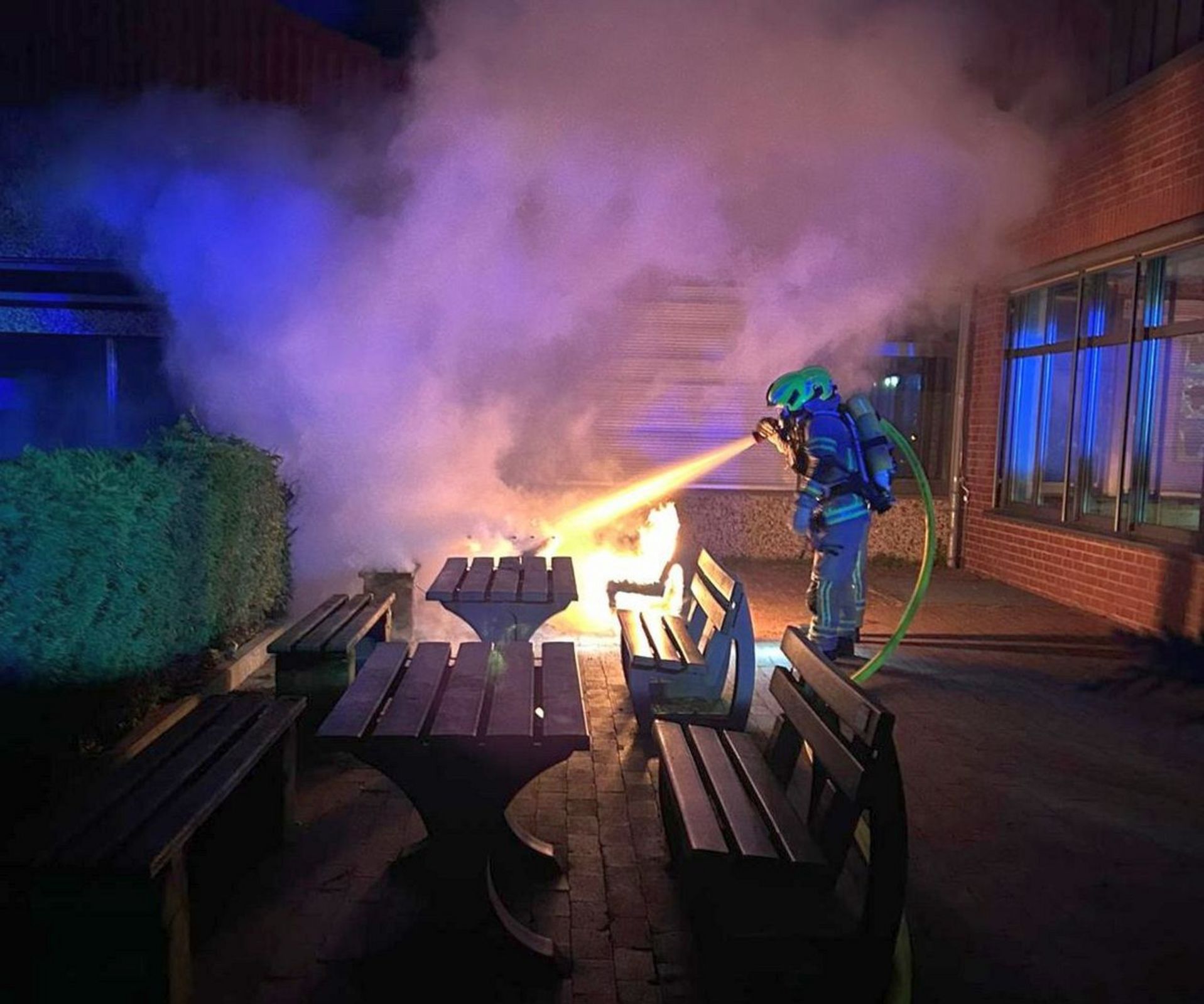 Im rückwärtigen Bereich des Schulgeländes brannte lediglich eine Sitzgarnitur. Für die Anwohner wirkten die durch die Fenster sichtbaren Flammen deutlich bedrohlicher, sodass zunächst von einem größeren Brand ausgegangen wurde.
