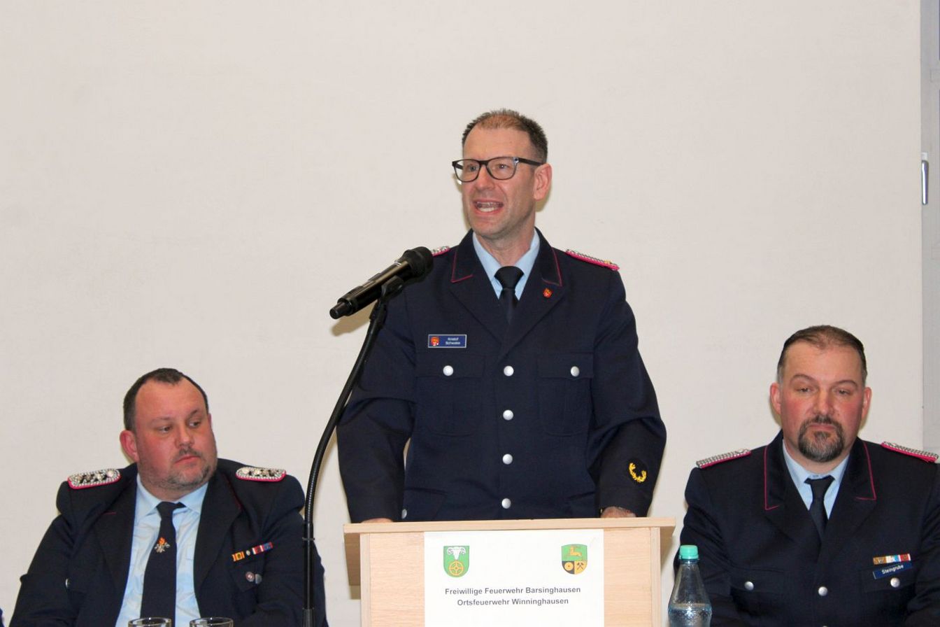 Brandschutzabschnittsleiter II, Kristof Schwake, dankte Winninghausen von Herzen für den Einsatz in der Regionsfeuerwehr: „Es ist großartig, dass ihr über die Ortsgrenzen hinweg Menschen zur Hilfe eilt und stets bei den Übungen dabei seid.“ Außerdem gab er einen Einblick über Ausbildungen und den weiteren Ausbau der Regionsfeuerwehr sowie einen Sachstand zum Neubau der Feuerwehrtechnischen Zentrale. „Es geht voran, und die Fertigstellung ist unverändert für 2030 geplant.“