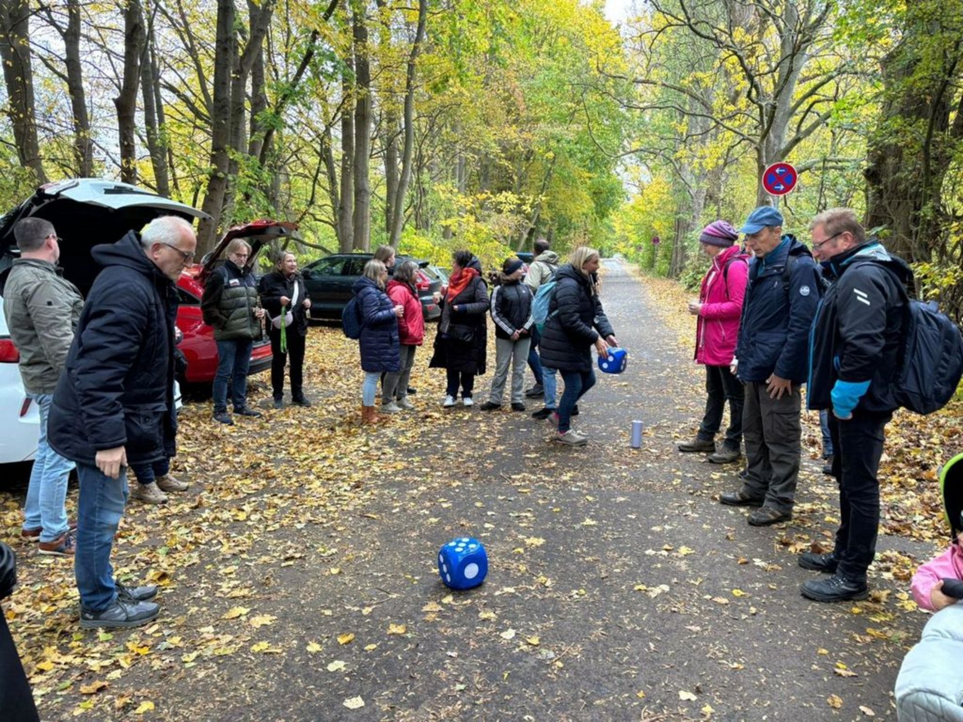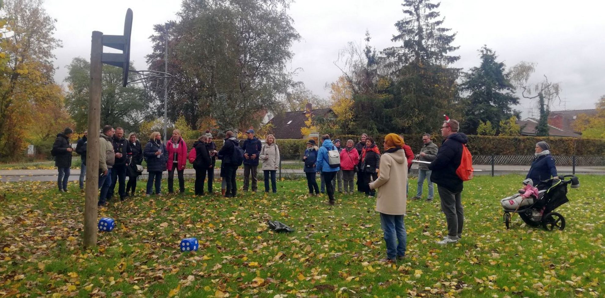 Vom Parkplatz an der Brücke Talstraße führte der Weg über die Leinerandstraße, vorbei am Vereinsheim des VfL Grasdorf und am Wasserwerk, bis hin zum Wiesendachhaus. Unterwegs sorgten kleine Spiele wie Korbwerfen, Ringe werfen oder Bälle fangen für gute Laune. Natürlich durfte auch die passende Verpflegung mit Getränken und Süßem nicht fehlen.